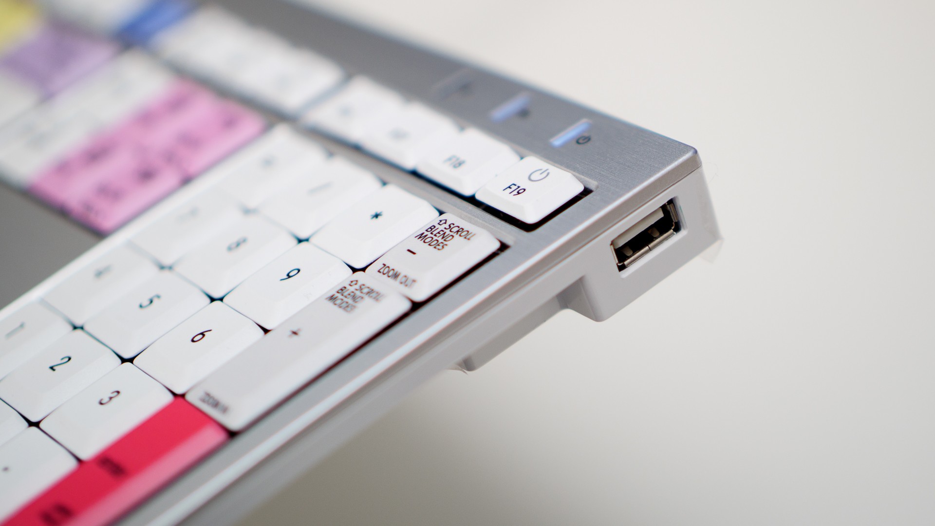 The ALBA keyboard is a standard-sized keyboard with a 10-key pad and all the usual function buttons for typing and navigating other apps, including a full array of function keys. As a bonus, it’s got two USB 2.0 ports, one on each end that communicates with the computer and provides 100mA of power each.