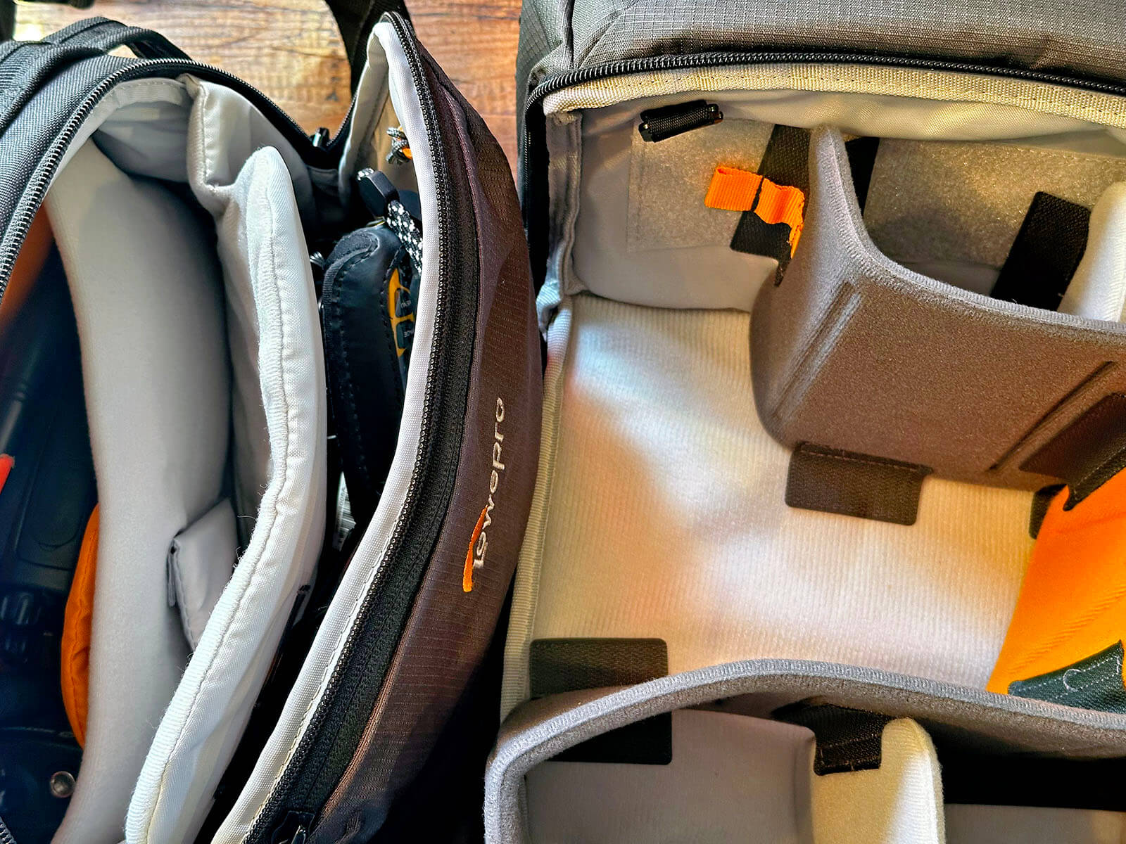 On the right is a photo supplied by Lowepro. They are evidently a lot neater than I am, but to be fair, I did really try to stuff it full of lenses! You could probably fit two mirrorless cameras in here, but it might be tight. It’s not a giant compartment, but it’s large enough for most people who are not bringing their collection for them. Remember, this backpack is more geared toward hikes, weekend getaways, and travel.