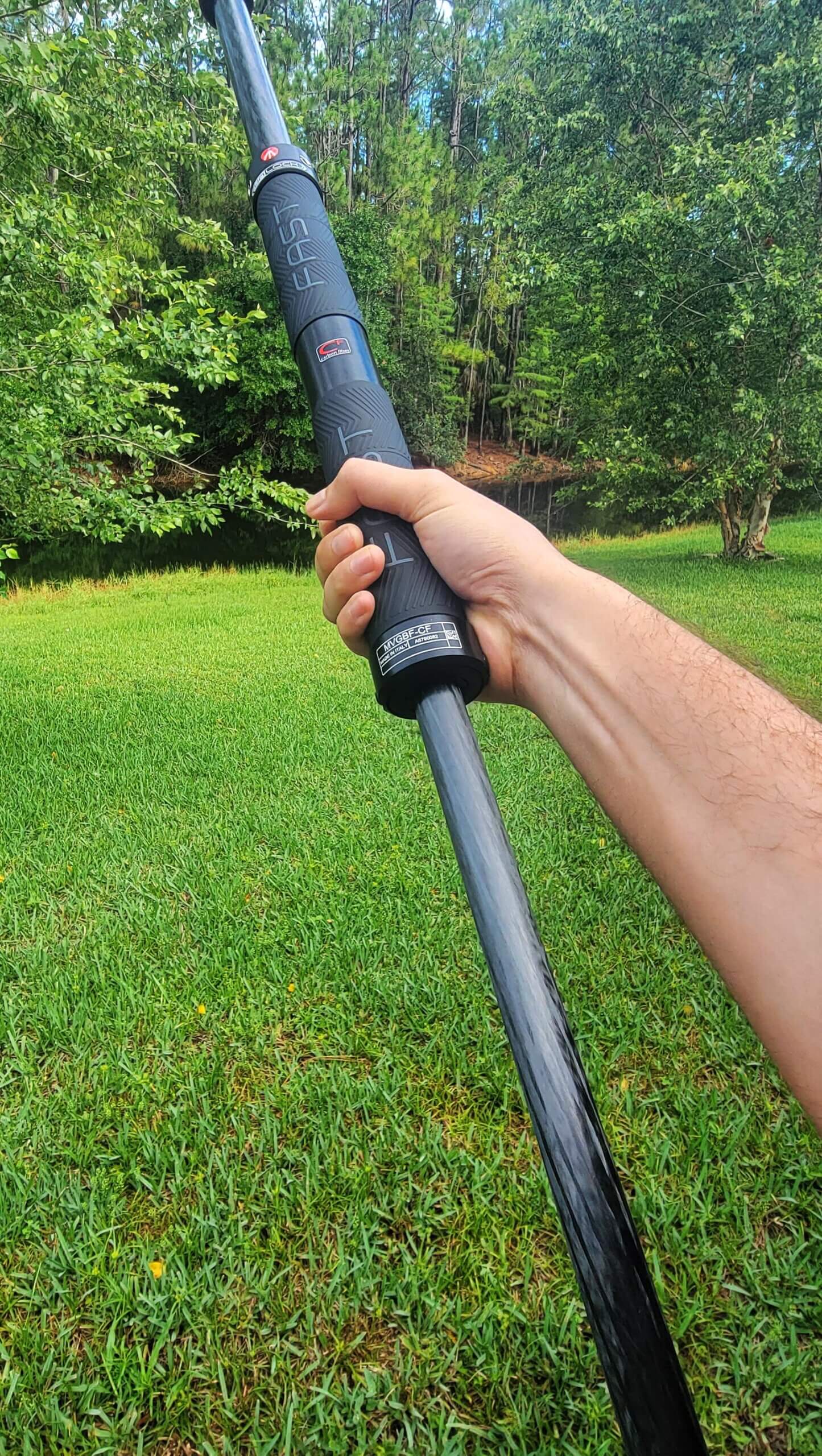 First, I took a look at the Manfrotto FAST GimBoom. Upon unboxing, I immediately noticed the solid design and construction, which has become a hallmark of Manfrotto products. The carbon fiber body felt extremely sturdy, and the patterned rubber handgrips provided a secure grip and a good feel in my hands.