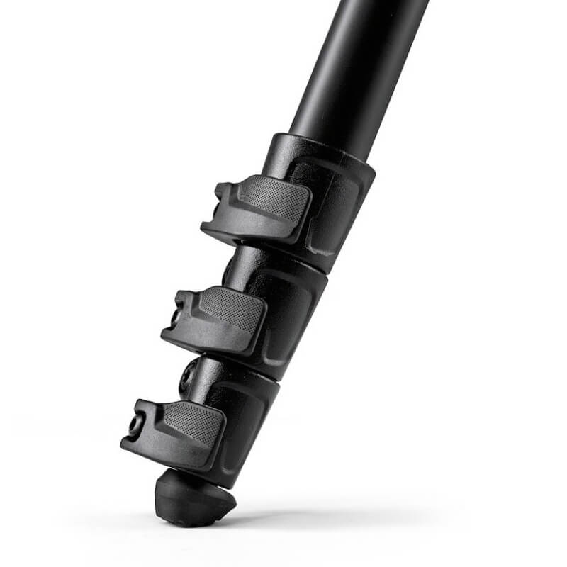 Weighing in under 4 lbs, it is certainly suitable for travel and extremely compact. Silver tabs easily slide down to allow movement of the legs through three locking angle positions. I opted for the lever-lock instead of twist-locks because I find them more dependable and simpler to use (my other tripods are twist-lock). But note that this option does add a fraction of weight to the tripod. This series also offers the twist-lock option.