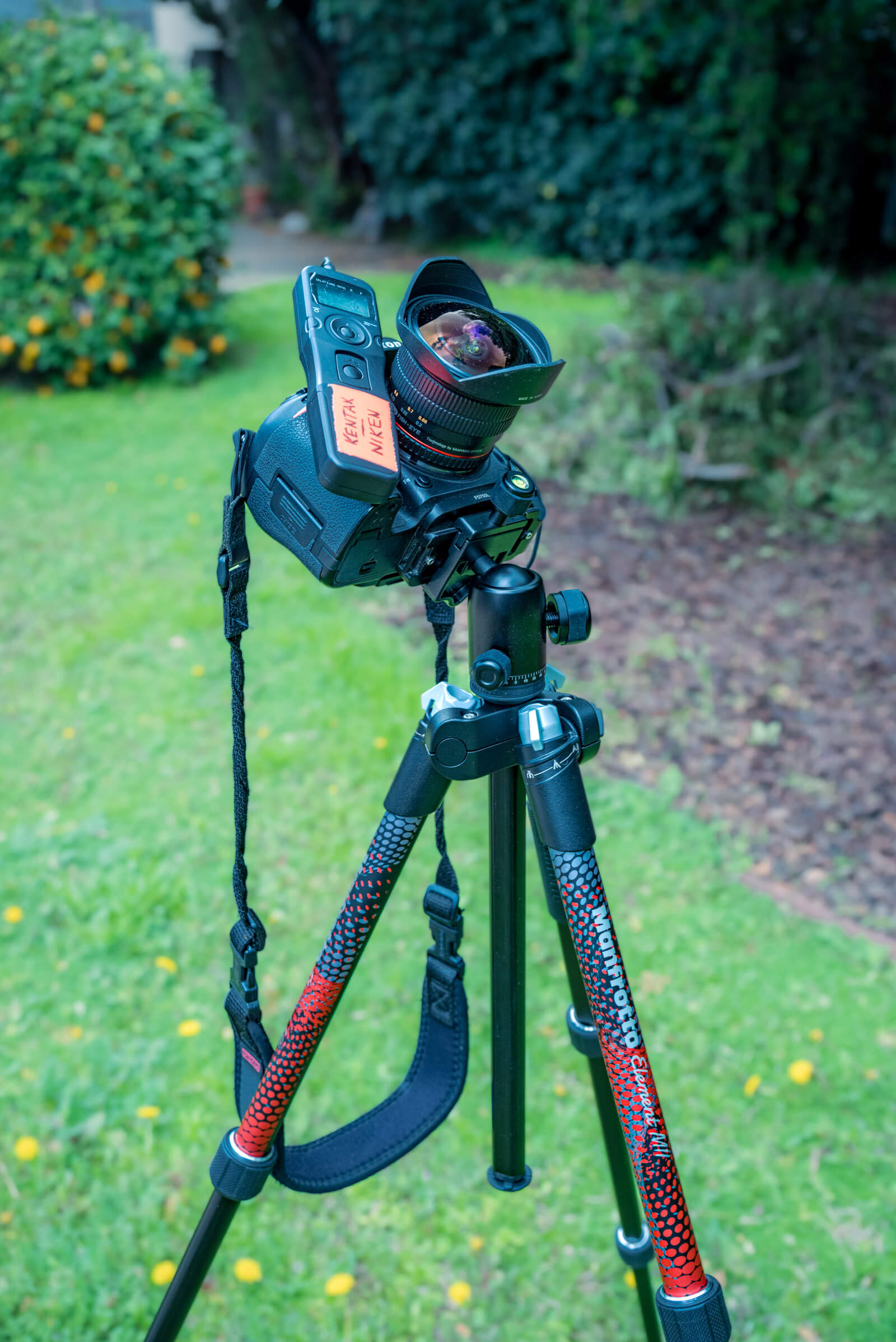 Could the Manfrotto Element MII Aluminum Red tripod handle a 3.5-hour long time-lapse? I tested this in my back yard using a Nikon D750 DSLR with a Rokinon 12mm fisheye. I had the legs fully extended, but did not extend the center column.