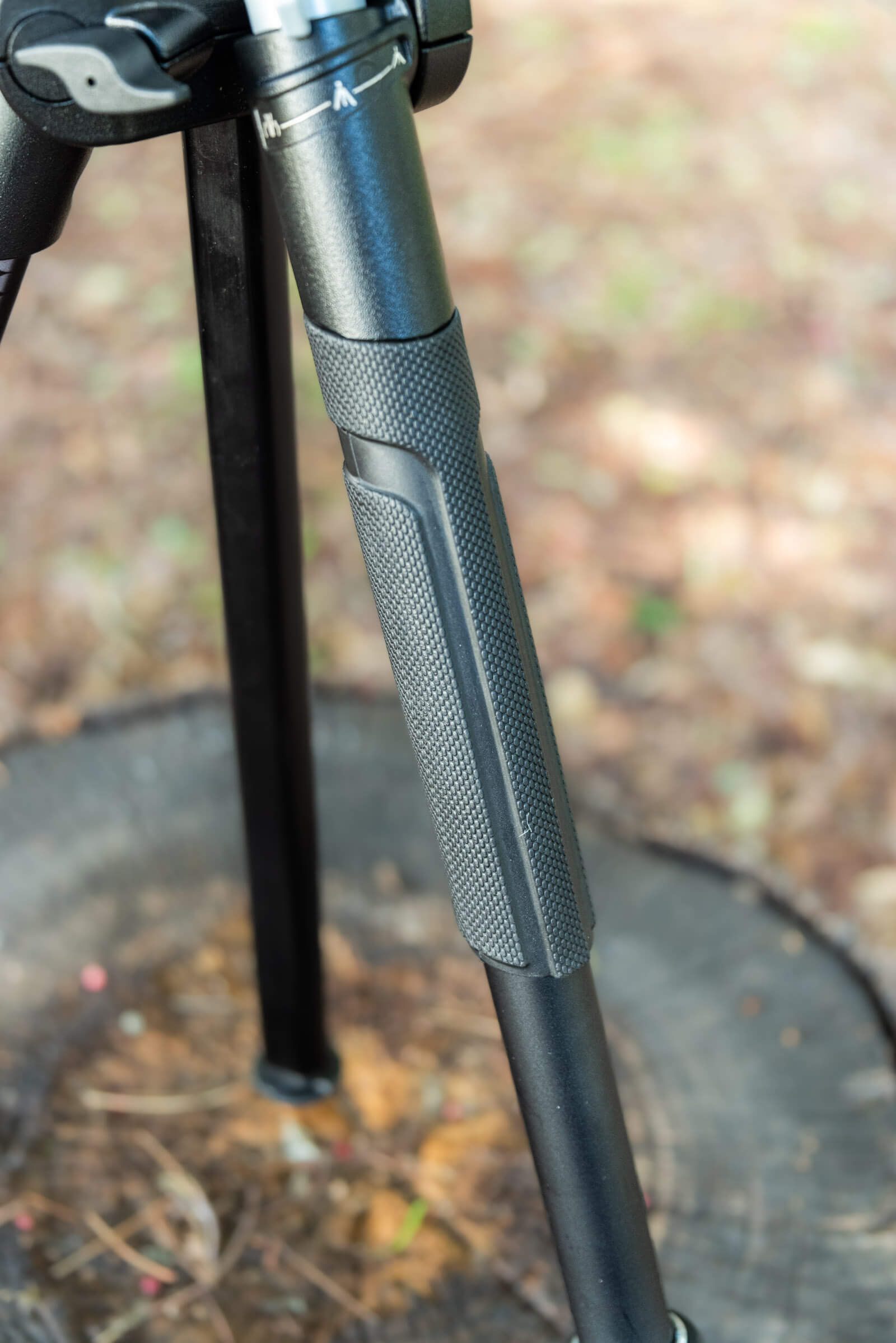 - Rubber grip on one of the legs for carrying and maneuvering the tripod