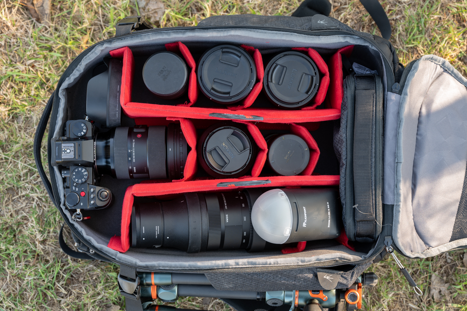 I used the Manfrotto PRO Lite Flexloader with a Panasonic Lumix S5, and a Nikon Z 6II. In terms of lenses, I loaded the bag with the NIKKOR Z 24-70mm f/4, the NIKKOR Z 50mm f/1.8, a Lumix 85mm f/1.8, a Lumix 20-60mm, a Sigma 24-70mm F/2.8 Art, a Sigma 100-400mm f/5.6-6.3, a Super Takumar 50mm f/1.4, a Tair 11a 135mm f/2.8 … and still had space left over for a Godox/Flashpoint V1 flash.