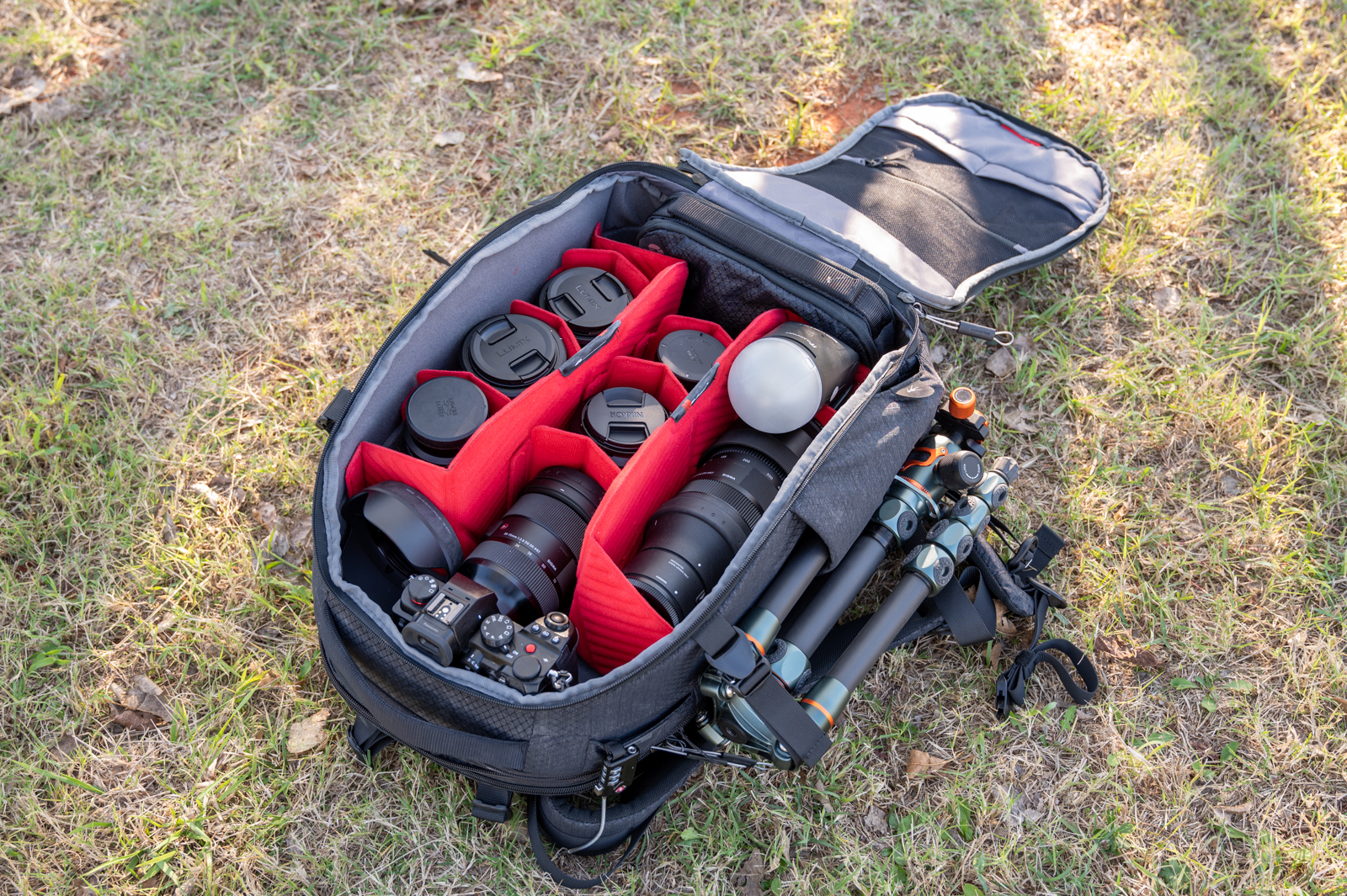 The large main compartment is 100% dedicated to carrying cameras, lenses, a drone, and even lights. Open the main compartment and the sheer amount of space will make your jaw drop.