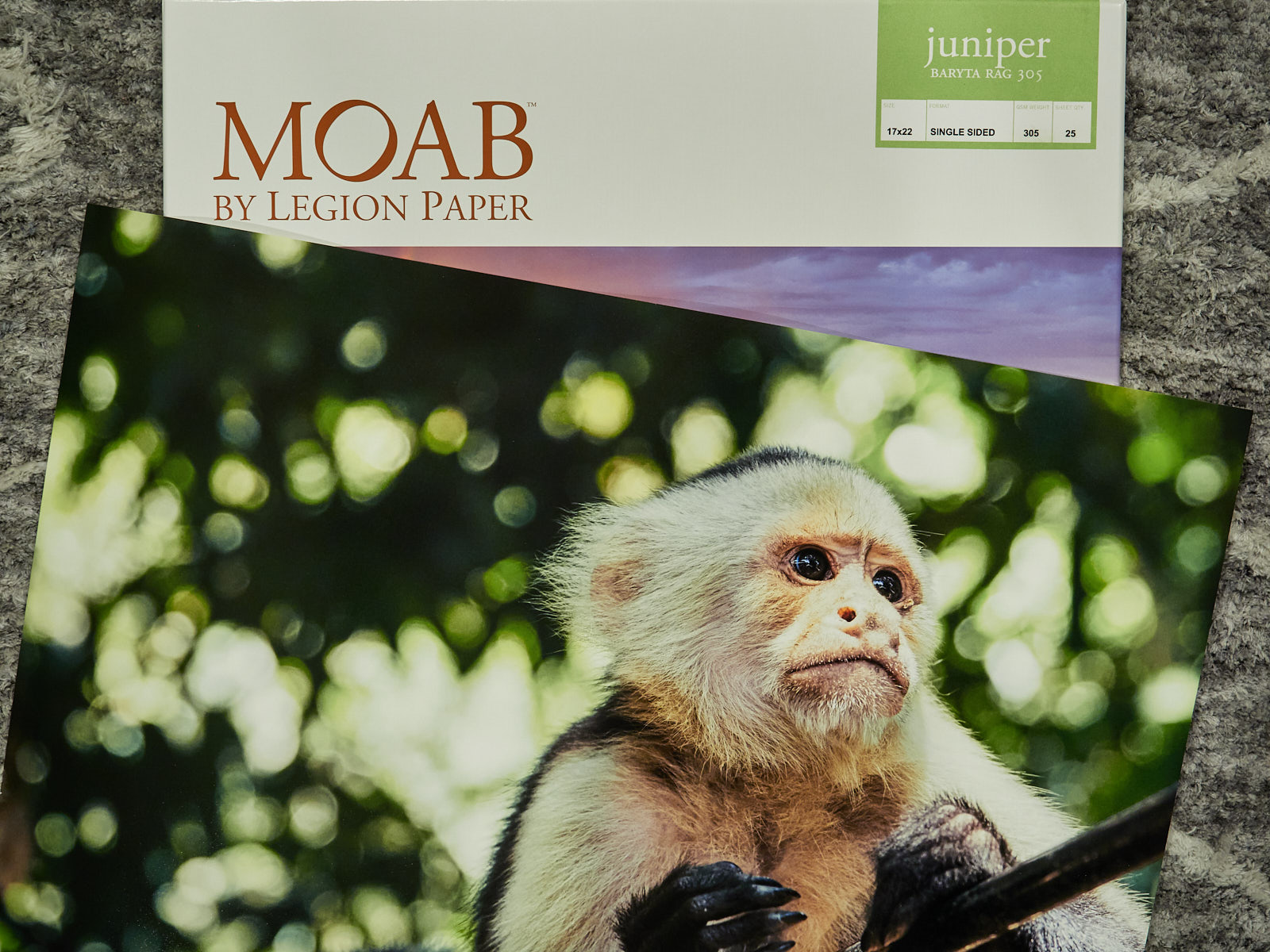 The Moab Juniper Baryta Rag 305 comes in several sizes, starting at 5-by-7 inches, all the way up to 35-by-47 inches. The 17-by-22 size I reviewed retails for $125.45, for 25 sheets.