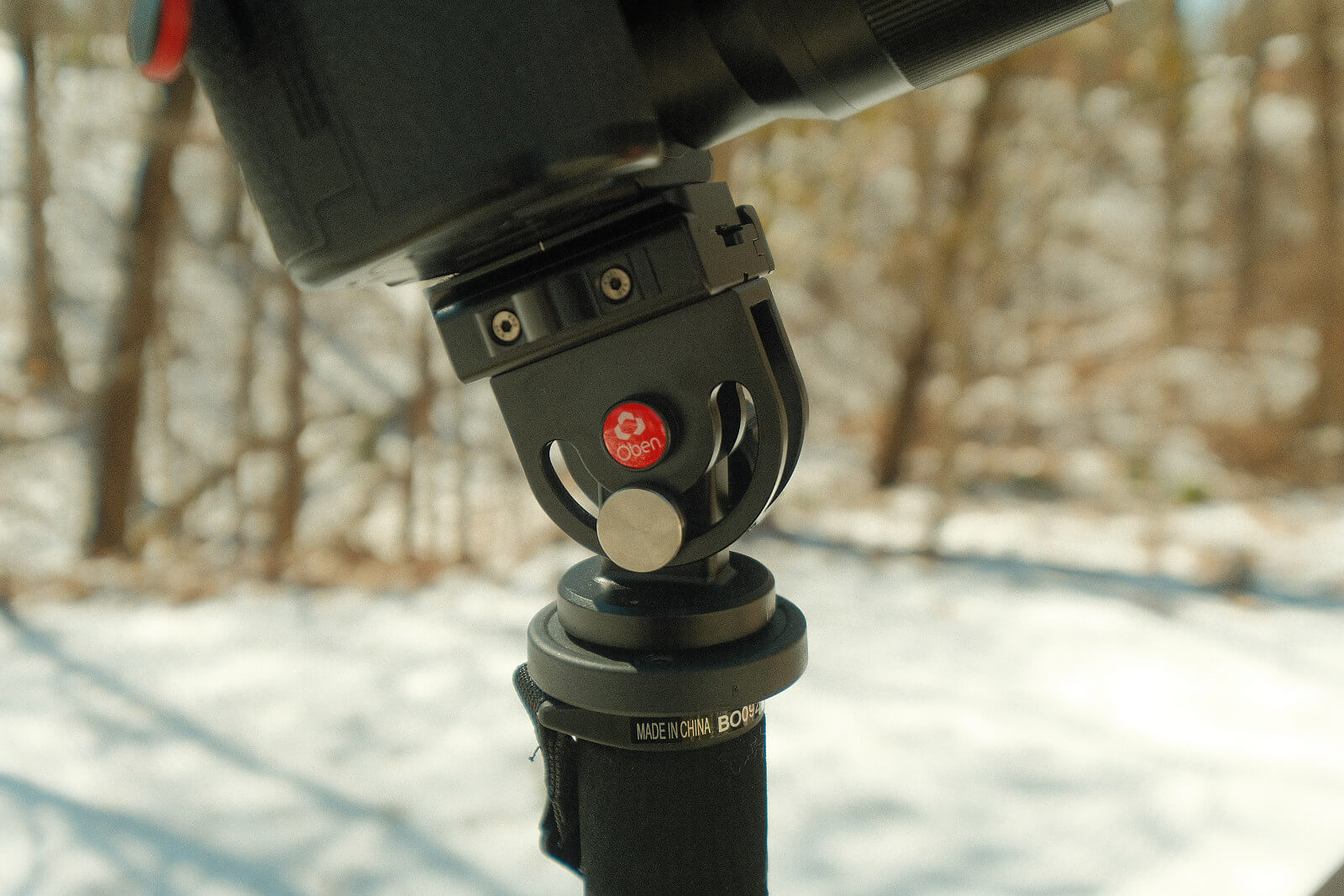 The optional Oben VH-A30 tilting head is a lovely addition as well. The knobs are all large and knurled. This makes them easy to manipulate even wearing gloves. The head is mostly solid metal and feels premium.