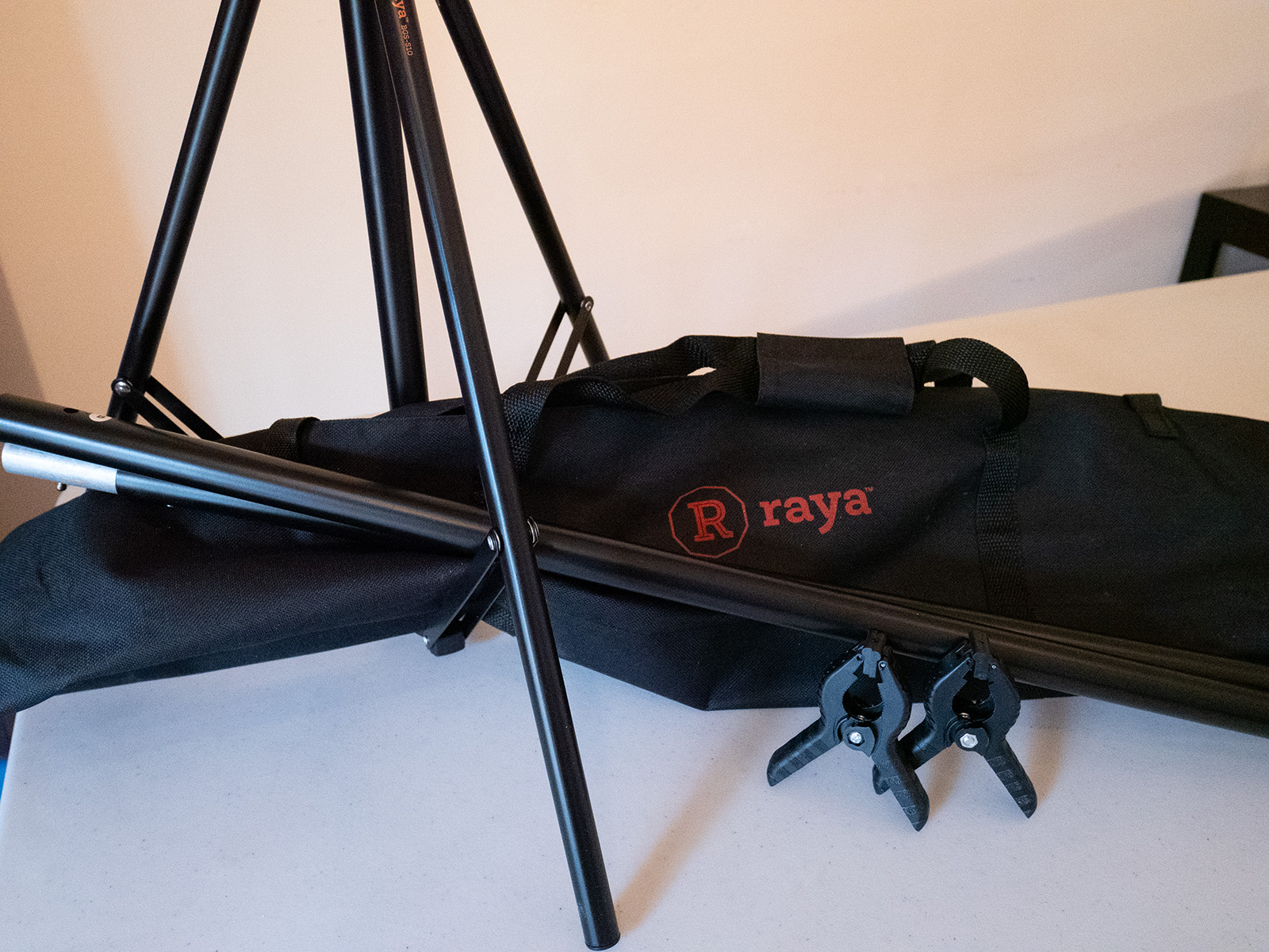 I was sent a Raya BGS-S10 background kit to test out. When I saw it had a sub-$40 price point, my expectations were not very high. When I took the stand out of its carrying case I thought, “Oh boy, these are pretty lightweight.” Turns out that’s a bonus.