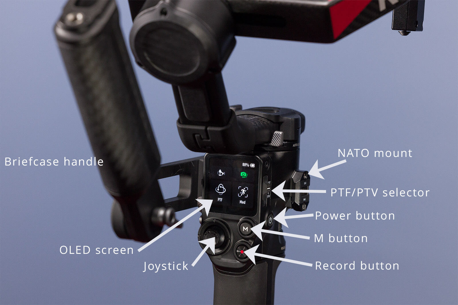- Briefcase mode requires the supplied handle to use the gimbal in low-angle shots.
