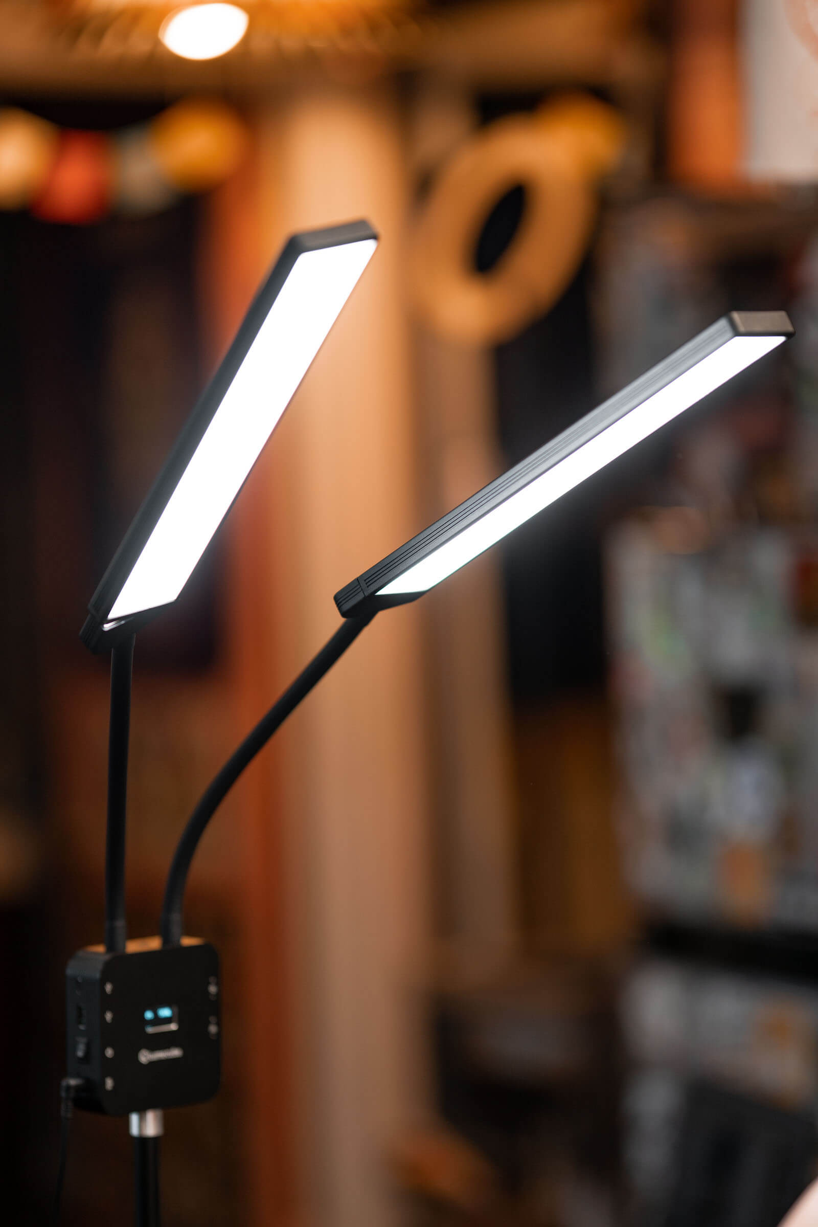 The quality of the light is soft and pleasing. Because you are able to swivel each light by 270 degrees as well as adjust the gooseneck for placement, it is easy and intuitive to place the two lights where you want them to be quickly.