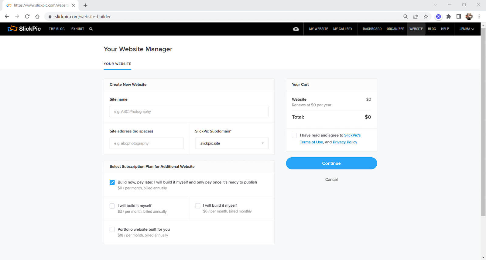 If you don’t want to use a custom domain, you can change your SlickPic subdomain under Website > Website Address, and choose from over a dozen different options like jemmapollari.slickpic.site, jemmapollari.portfolio.wedding and more.