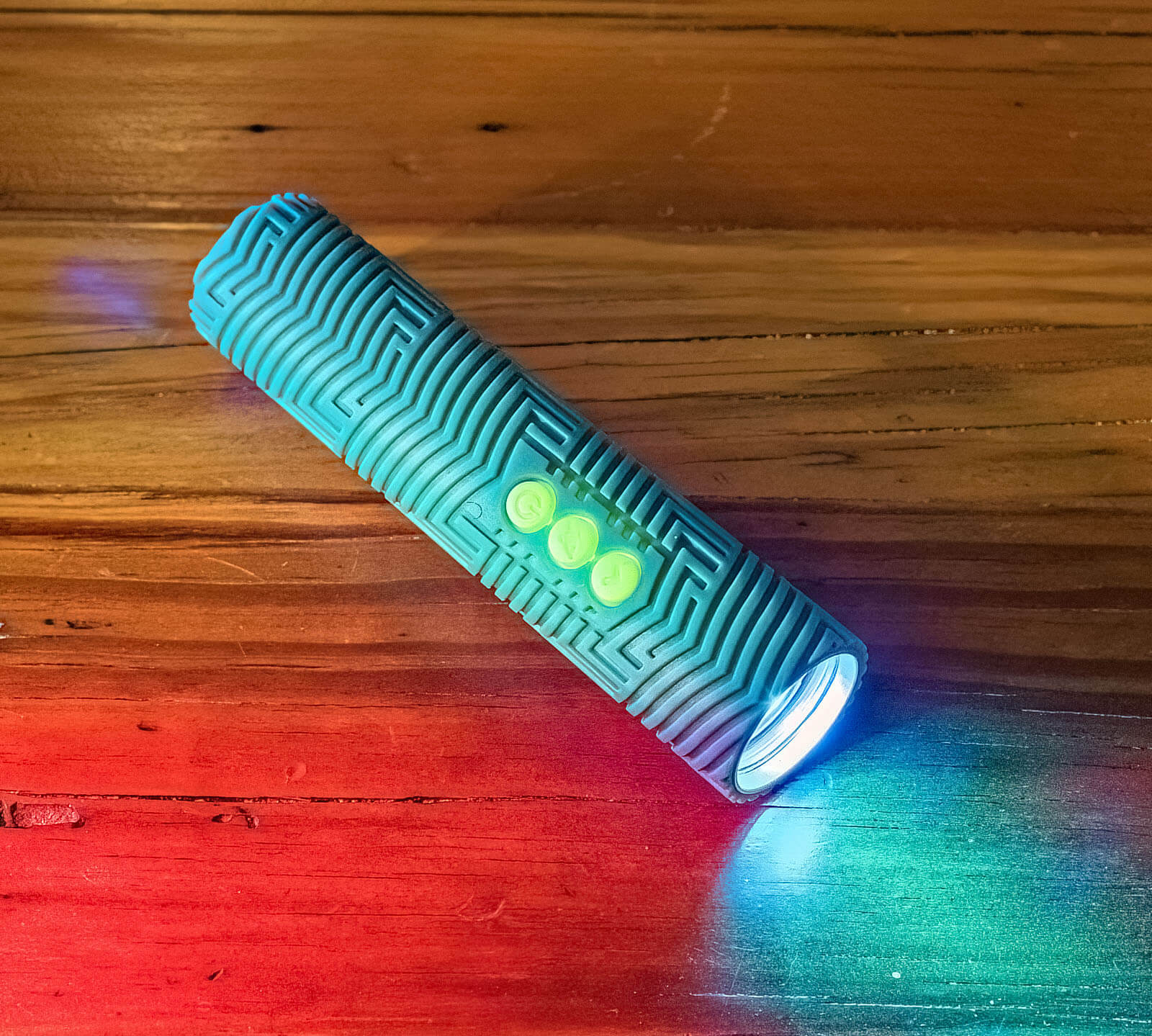 You control the RGB Critter 2.0 via three buttons. There are no menus or display. Consequently, the flashlight will “acknowledge” changes through different color flashes or pulses.