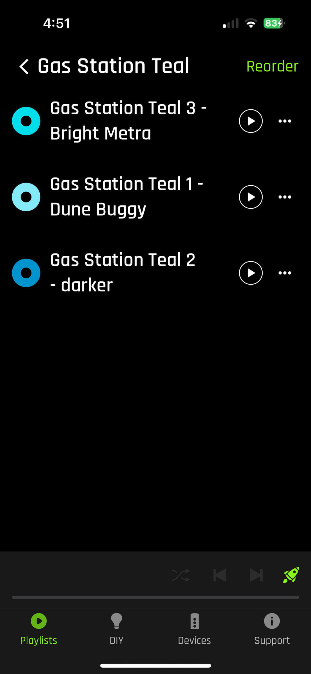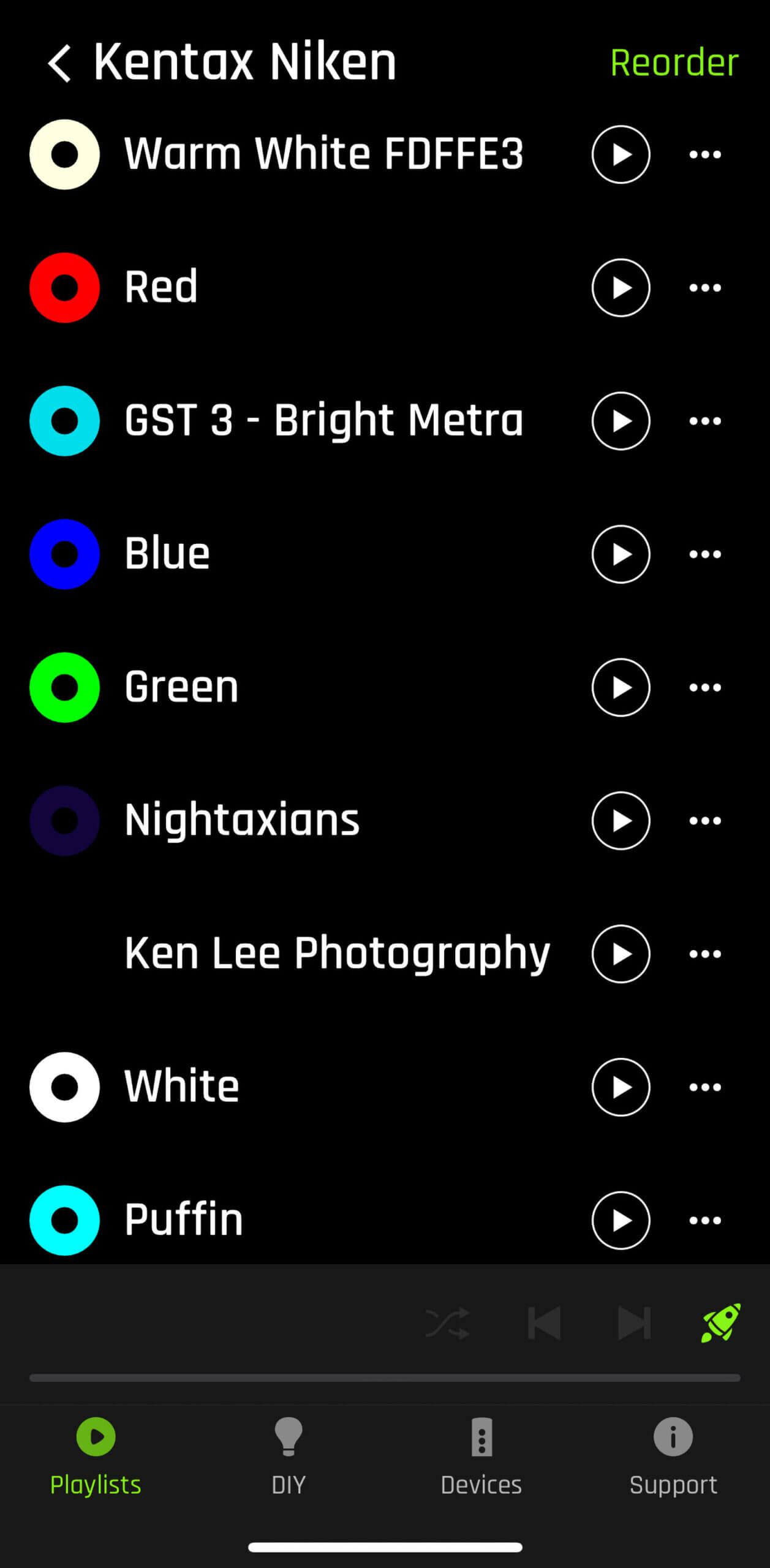 Then, you can save your colors in one of your custom playlists. And yes, you can name all of these…with long, descriptive names if you wish.