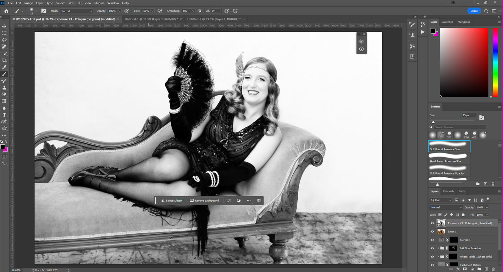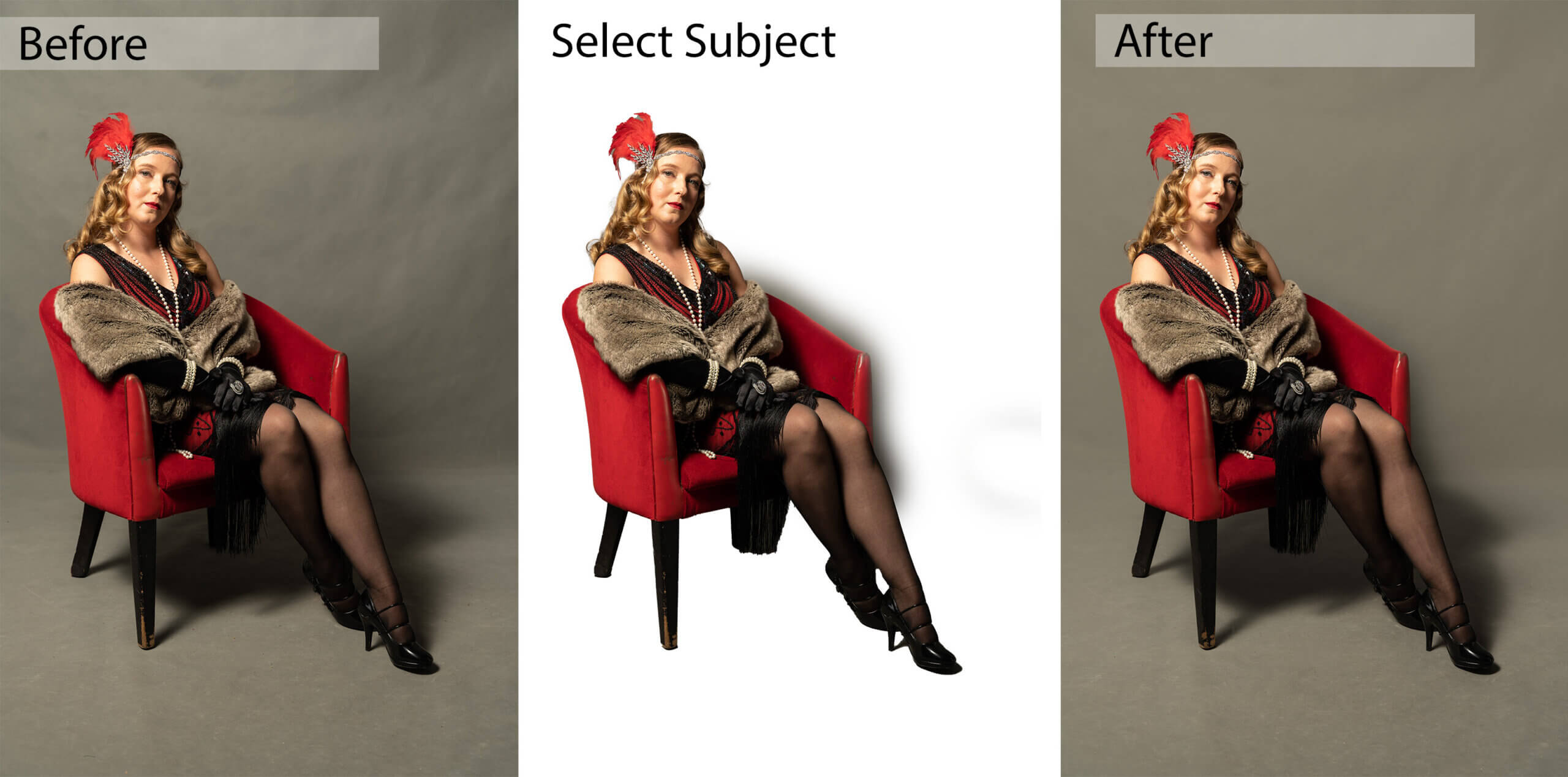 Used in conjunction with the Contextual Task Bar, it can make life a little quicker, with fewer steps. Either Select Subject or Remove Background automatically selects and adds a layer mask (I suggest working on a duplicate layer). But I found it didn’t always do the best job of selection. What changed? It may take some getting used to, but I actually found the good old Lasso and Content-Aware Fill were quicker. There may be a way to quickly add to a selection, but again I found falling back on old tools quicker and did a better job. I needed to add my own shadows back in (the above image).
