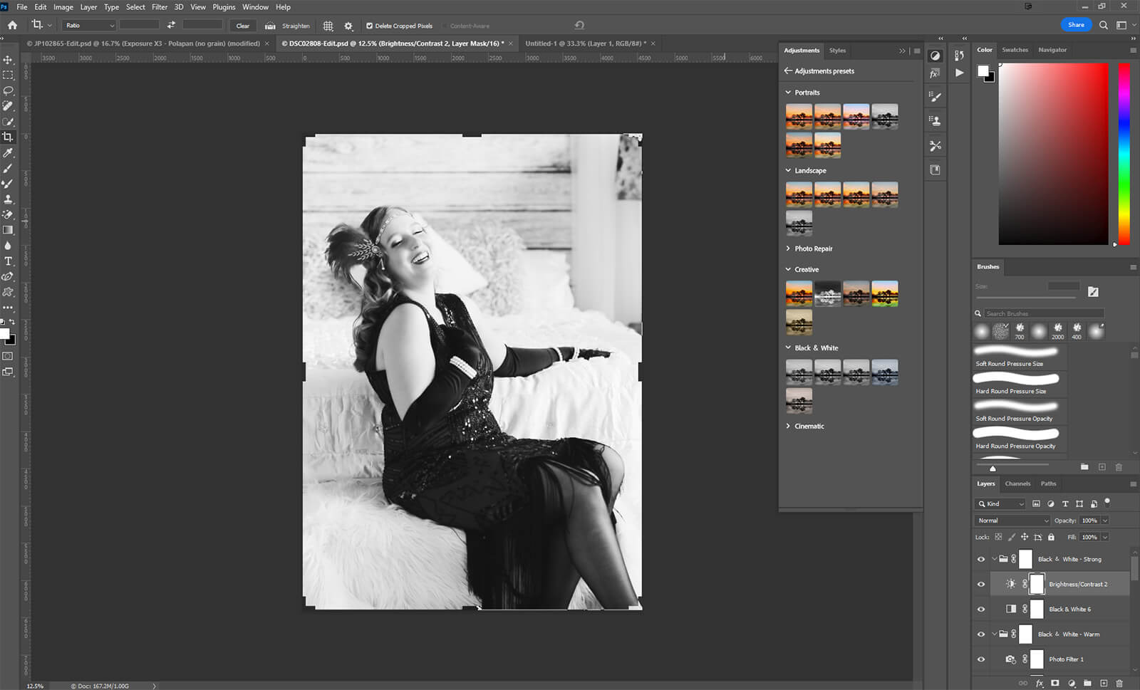 There are 32 new presets in the Adjustments panel that you can hover over to see what your image would look like with each preset applied before selecting it. Once a preset is selected, it can be further refined by editing the automatically created adjustment layers in the layers panel. These can be found by clicking on the Window tab at the time and clicking Adjustments.