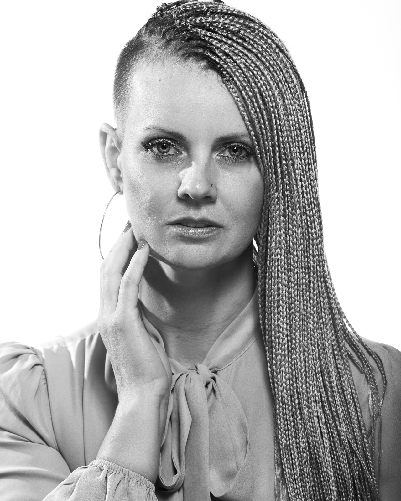 Rohanna and I scheduled a studio session a couple of weeks later. I hoped to simplify her outfit and try the eye autofocus again. I learned a new and frustrating lesson, being the electronic viewfinder. With a typical DSLR, light enters the lens barrel, reflects off the mirror and into the prism for the eyepiece. What you see is with available light.