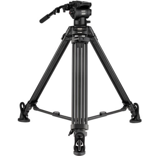 The Magnus REX VT-5000 2-Stage Video Tripod with Fluid Head is a heavy-duty tripod for heavy-duty videography. This package provides a robust and stable platform to shoot from. Its fluid head provides a silky smooth pan and tilt action. With both large rubber platform feet and spiked metal feet, the Magnus Rex VT-5000 is ready to shoot in any terrain. This videography tripod excels when handling heavy camera rigs. Beware if you intend to run a small mirrorless camera, the VT-4000 may be the better choice for you. However, if a bigger tripod is your game, this may be the best videography tripod in its price range.
