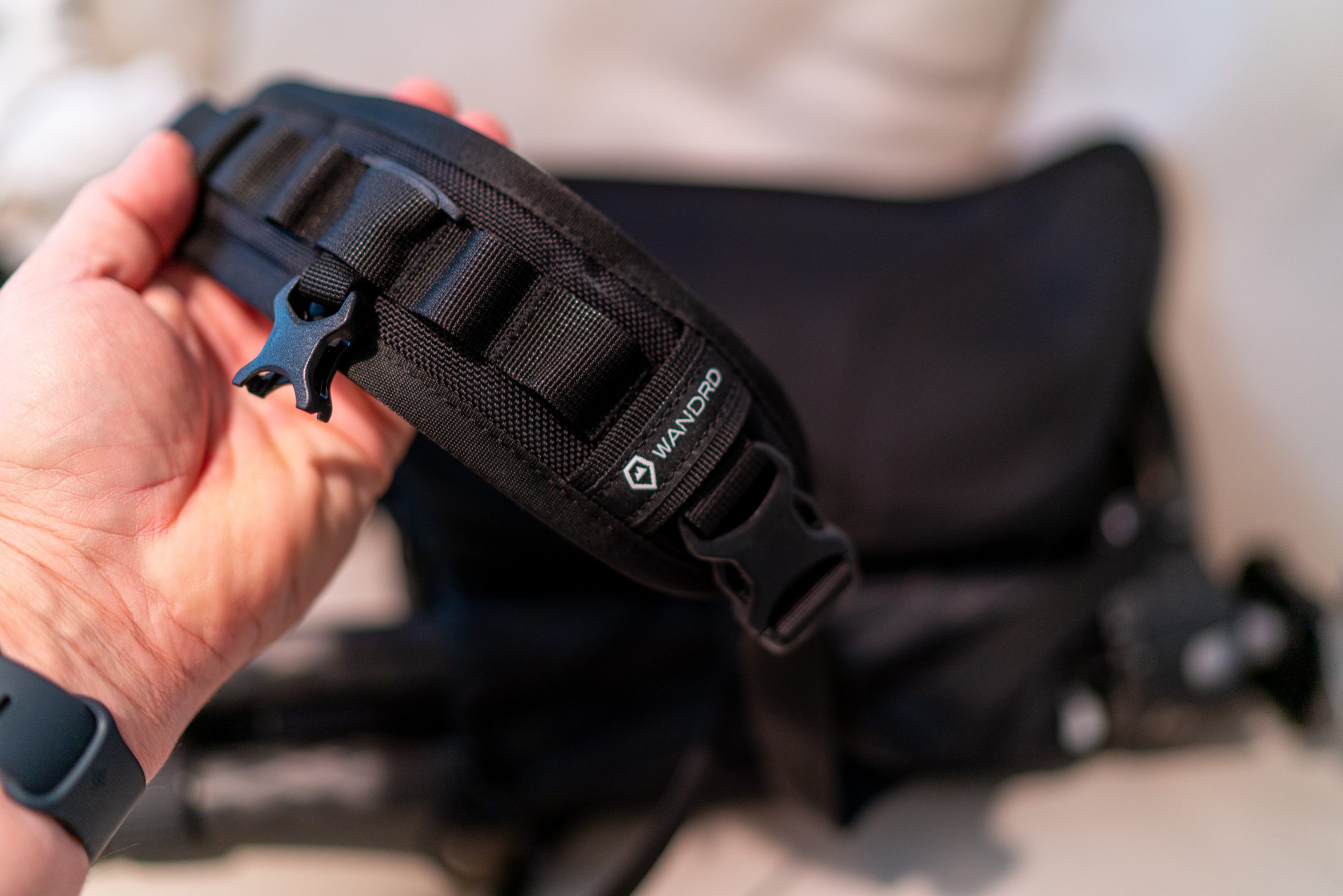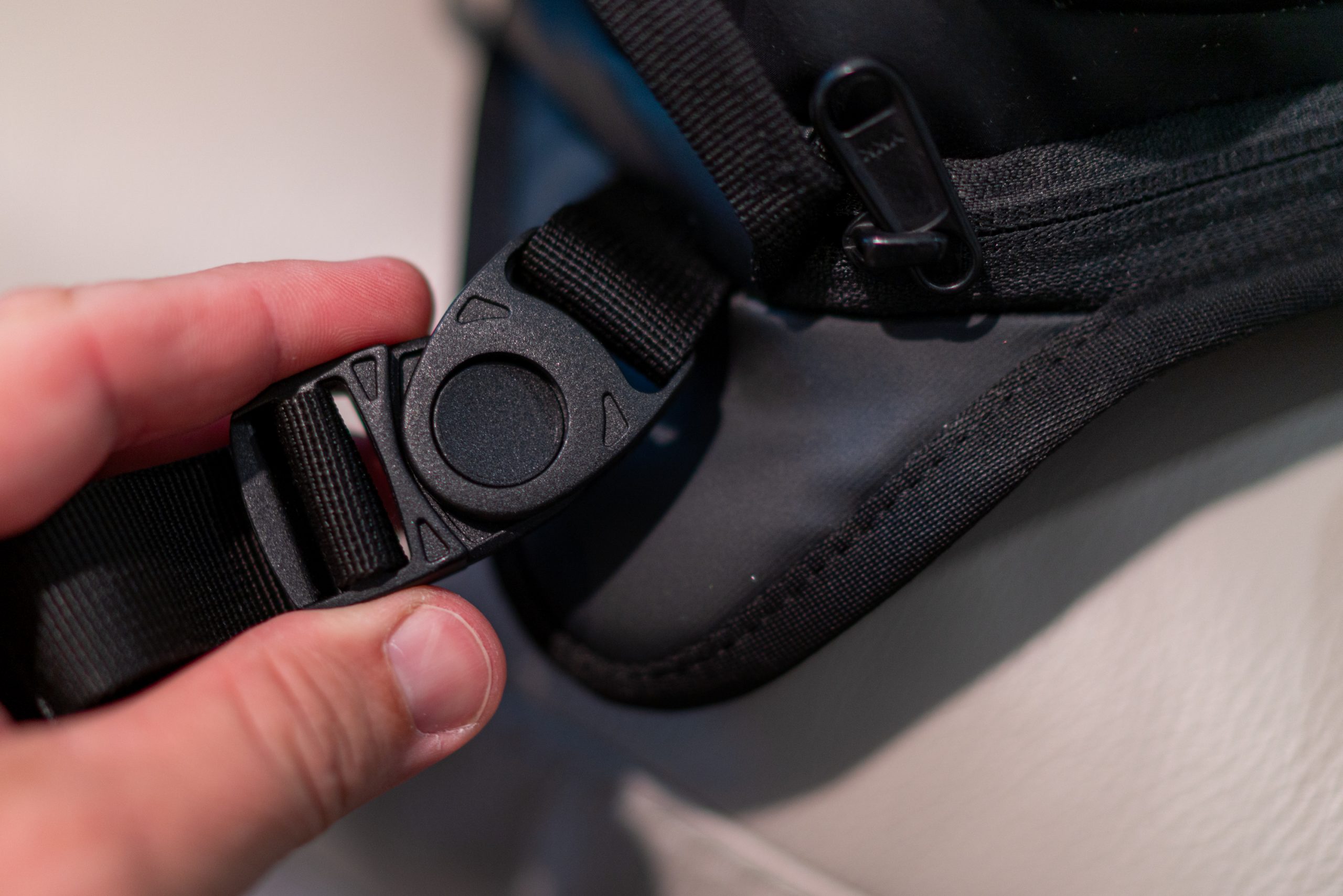 The ROAM Sling also has an additional strap that wraps around and clips to the front of the bag. This helps keep the bag stabilized on your back when you don’t need to access it. It’s nice because it prevents the bag from flopping around when I’m on a hike.