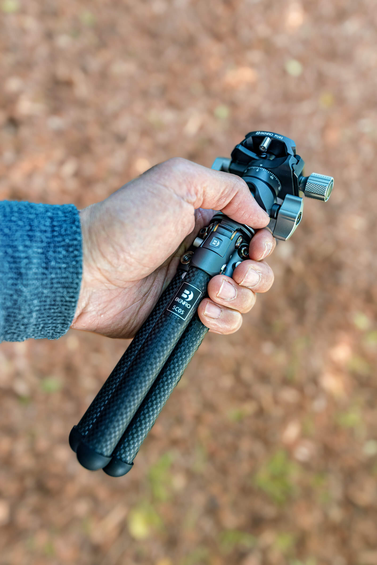 The whole design is small and stable. I tapped on the tripod to check for vibrations. However, the tripod did not exhibit extended vibration, even with this giant amount of weight. This is due in part to the one-piece legs, but also because there is no center column. It’s safe to say that if it can hold a Pentax K-1 and giant 15-30mm lens, it’ll hold your small DSLR, mirrorless, or phone solidly.