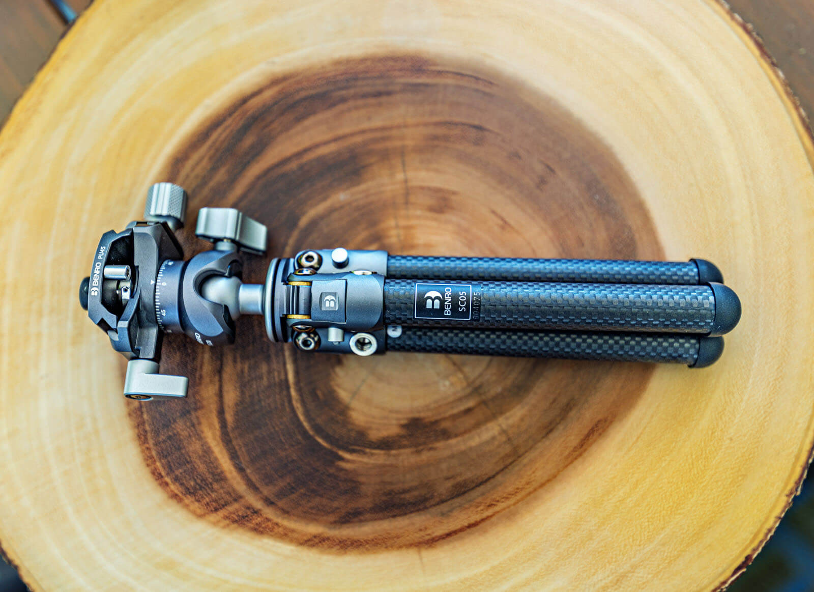 However, Benro designed this well. It’s also simple. There’s no center column. And you cannot extend the legs because, well, they’re made of one solid piece. Because of this, I should point out that the tripod will be less flexible on uneven surfaces. Benro definitely designed this for vlogging, self-recording on flat surfaces, Zoom or virtual meetings, offices and other indoor use. It should also be fine for backyards and beaches, but perhaps not so much for hiking in uneven, rocky surfaces.