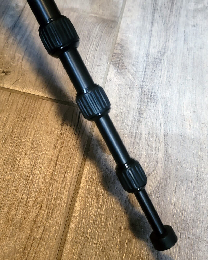 The legs themselves have 4 telescoping sections, so you can set the tripod up in the strangest situations or tightest spaces. The easy-to-use rubber twist-locks allow for quick adjustment and help keep a slim profile. With the legs set, you can also alter the working height with the two-section center column.
