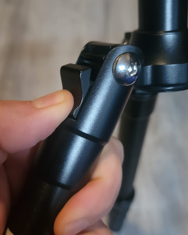 Even at maximum height, it’s still sturdy thanks to a strong aluminum alloy construction that can support a 13-lb load. It’s also versatile. Each of the three legs can be independently spread and angled to three different locking positions, thanks to spring-loaded locks that are easy to disengage with a push. This allows you to position the tripod on uneven ground quite easily.