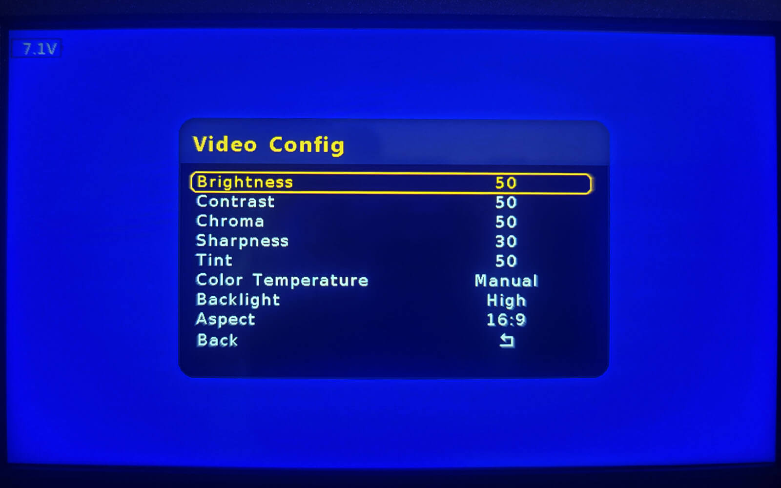 A robust menu has 20 functions, including positioning aids (guides, grids, crosshairs), image settings (brightness, contrast, chroma, sharpness, tiny, color temperature) and other general settings such as backlight, aspect ratio and config/menu options.