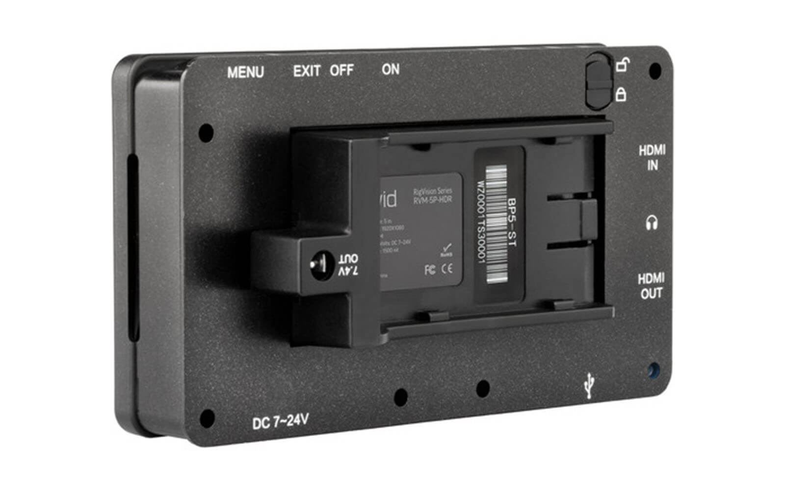It has HDMI input and loop-through HDMI output, which any video pro knows is quite handy. The HDMI input accepts DCI and UHD 4K, 1080p and more at various frame rates. The display is a 5-inch 1920×1080 8-bit IPS LCD type that boasts 1500cd/m2 brightness, 1000:1 contrast ratio and 160-degree viewing angle. The Elvid can perform real time LUT monitoring.