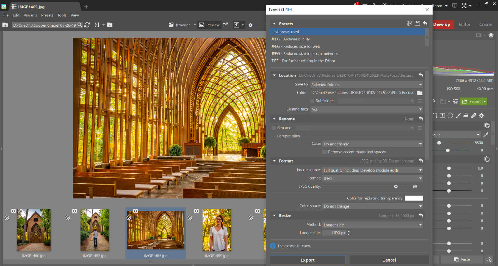 Develop — Everything you’d expect, plus several auto enhancements and presets