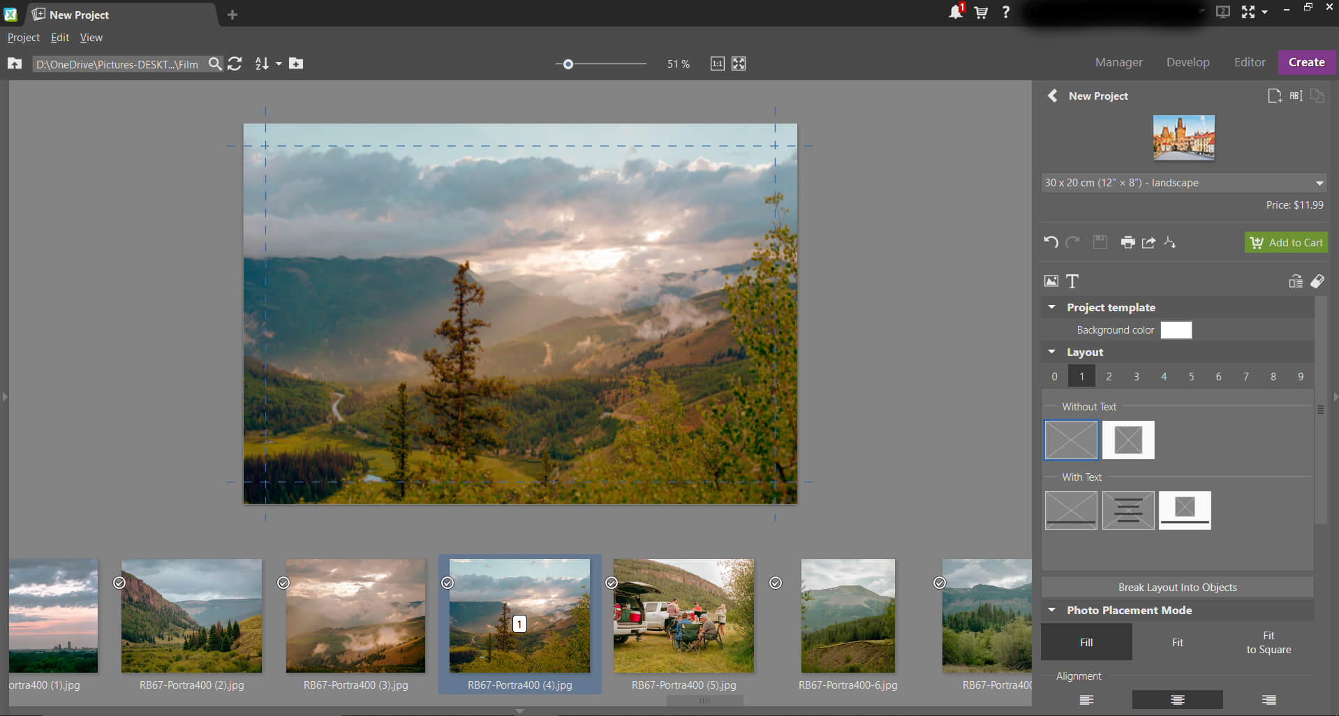 The Create module is likely the most unique feature of Zoner Photo StudioX. In this module, you have the ability to layout and order several types of projects. From calendars to canvases, postcards to collages, this module has your back. While you’re able to order your creation once it’s done, you don’t have to. Photo Studio X has the option to export the project or print if you’re so inclined.