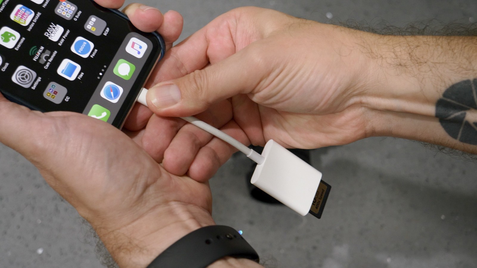 When I’m shooting on location and don’t want to bring a laptop and drives, I’ll use an SD card reader with my iPhone or iPad to get the photos into Lightroom. As my photos and videos are backing up to the cloud they are also being downloaded onto a dedicated drive in my office.