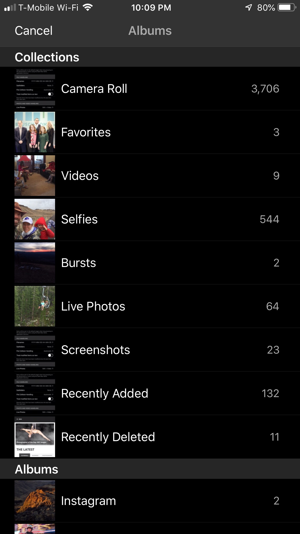 Once you’re in the app, select the album on your phone from which to send photos to your computer. Then click the album in the top center. Check the circle button in the corner of the pictures you want to send. Now use the Share button in the top right corner. It’s super simple.