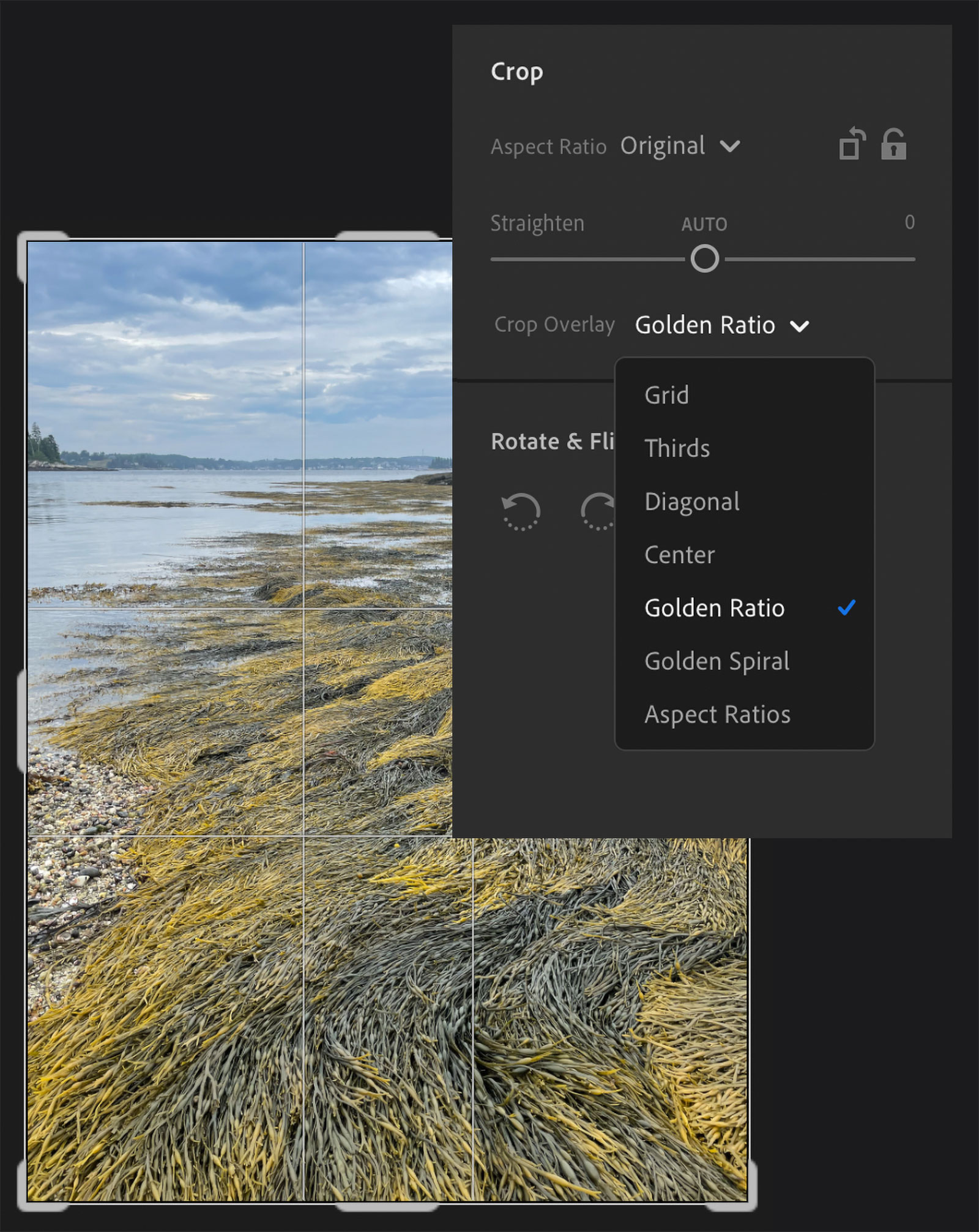 Smart cropping changes the entire narrative and impact of your shot. With this release, Adobe has included the ability for you to choose new crop overlays for different aspect ratios to improve your photo’s composition. To use the new overlays in Lightroom on your Mac or Windows computer, click the overlay drop-down and experiment with new overlays, including visualizing the Rule of Thirds or Golden Ratio.