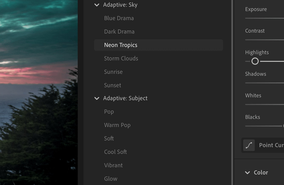 Adaptive presets have also been added, allowing users to use artificial intelligence to target a particular part of a photo. The first two sets of Adaptive Presets include presets for making skies dramatic, and for making your subject pop.