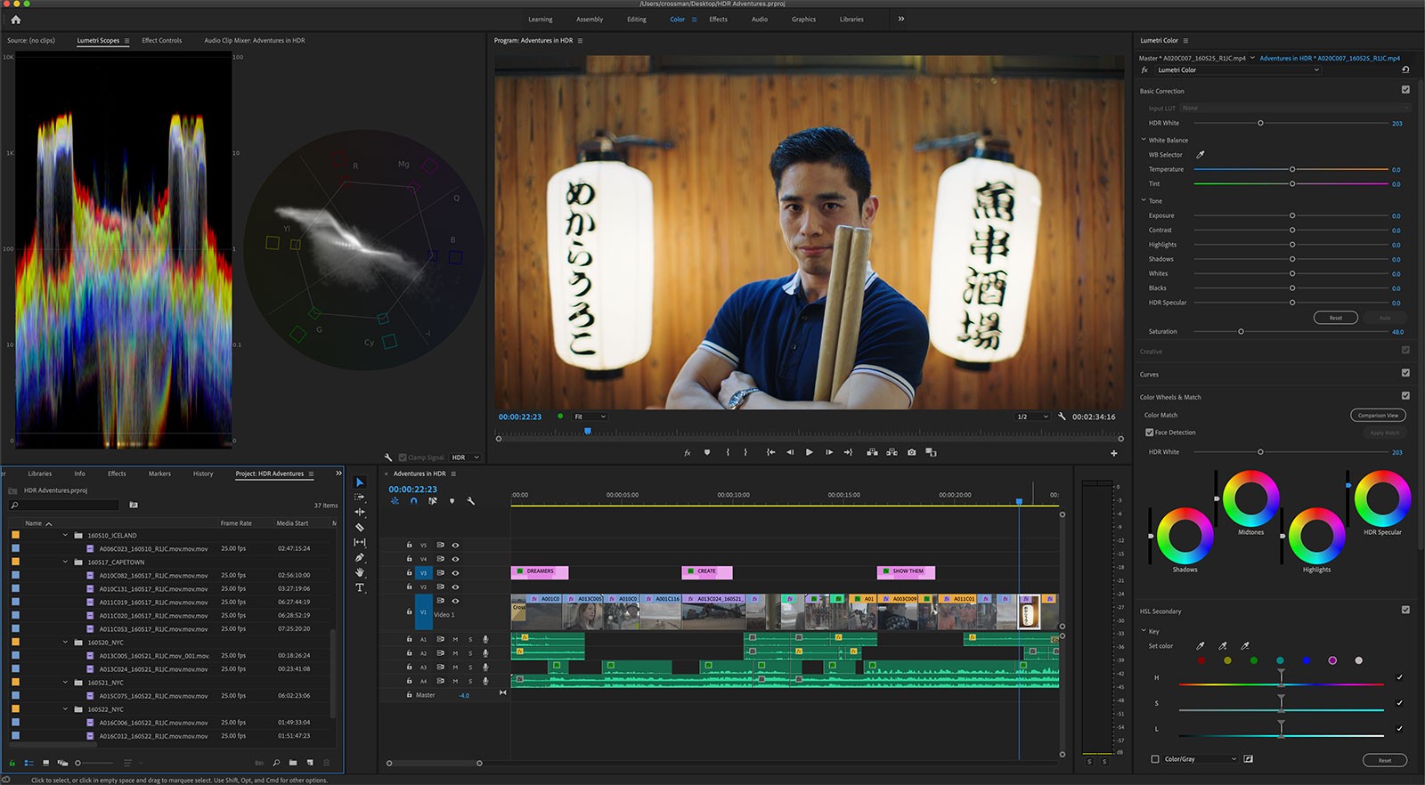 Premiere Pro features improved playback for widely used formats like H264, HEVC and Apple ProRes. ProRes HDR runs up to 10 times faster than the previous version.