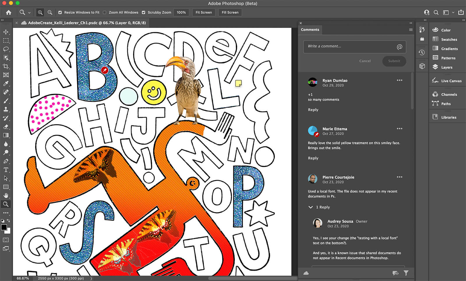 Quickly share your designs with collaborators to view and give feedback. Save time by receiving and responding to comments without leaving Photoshop on iPad. This feature is also shipping today in Photoshop on desktop.