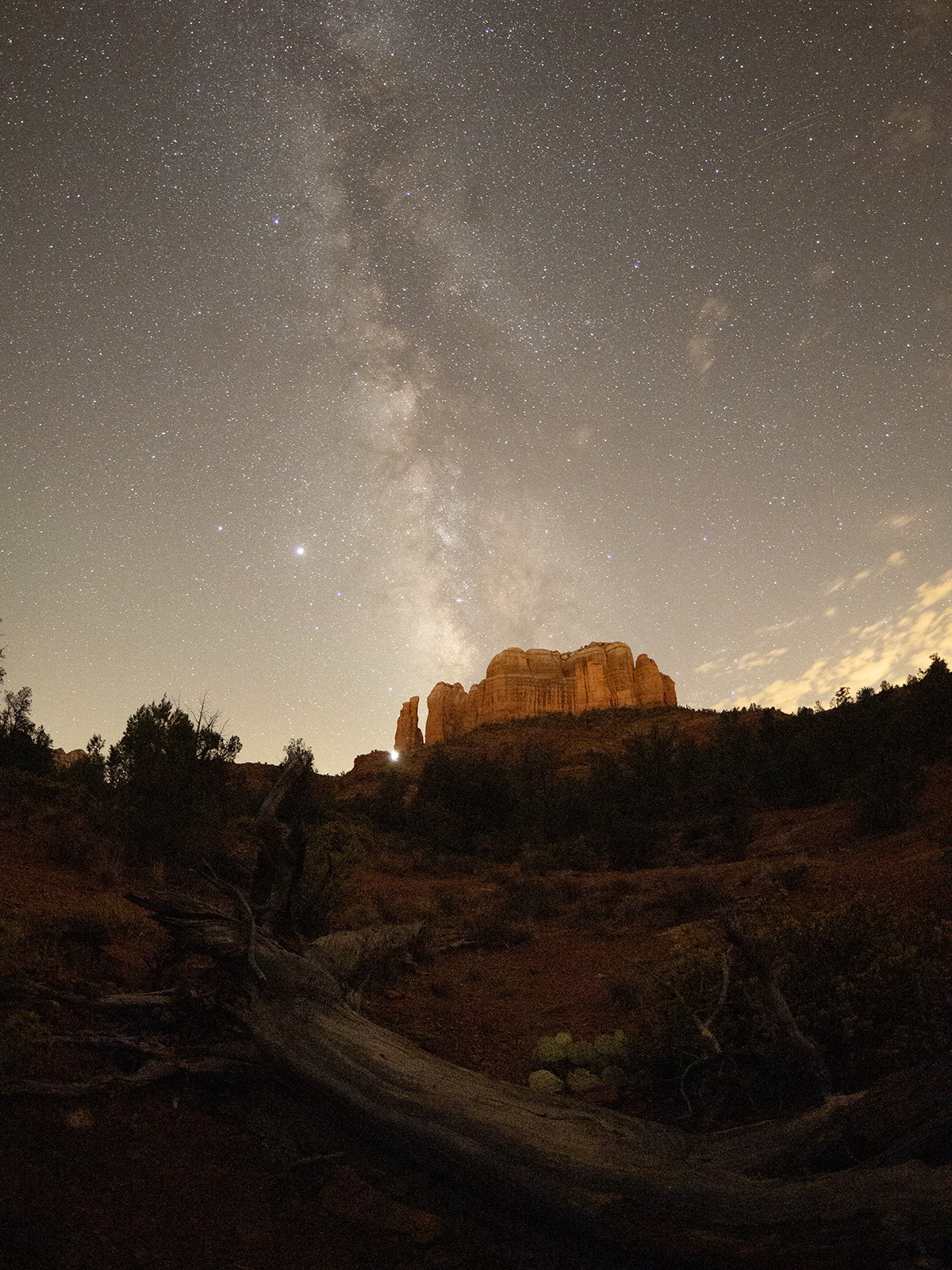 I was able to set up very close to the tree making it prominent as a foreground element. The Milky Way and red rock formation were still strong supporting players in the composition.
