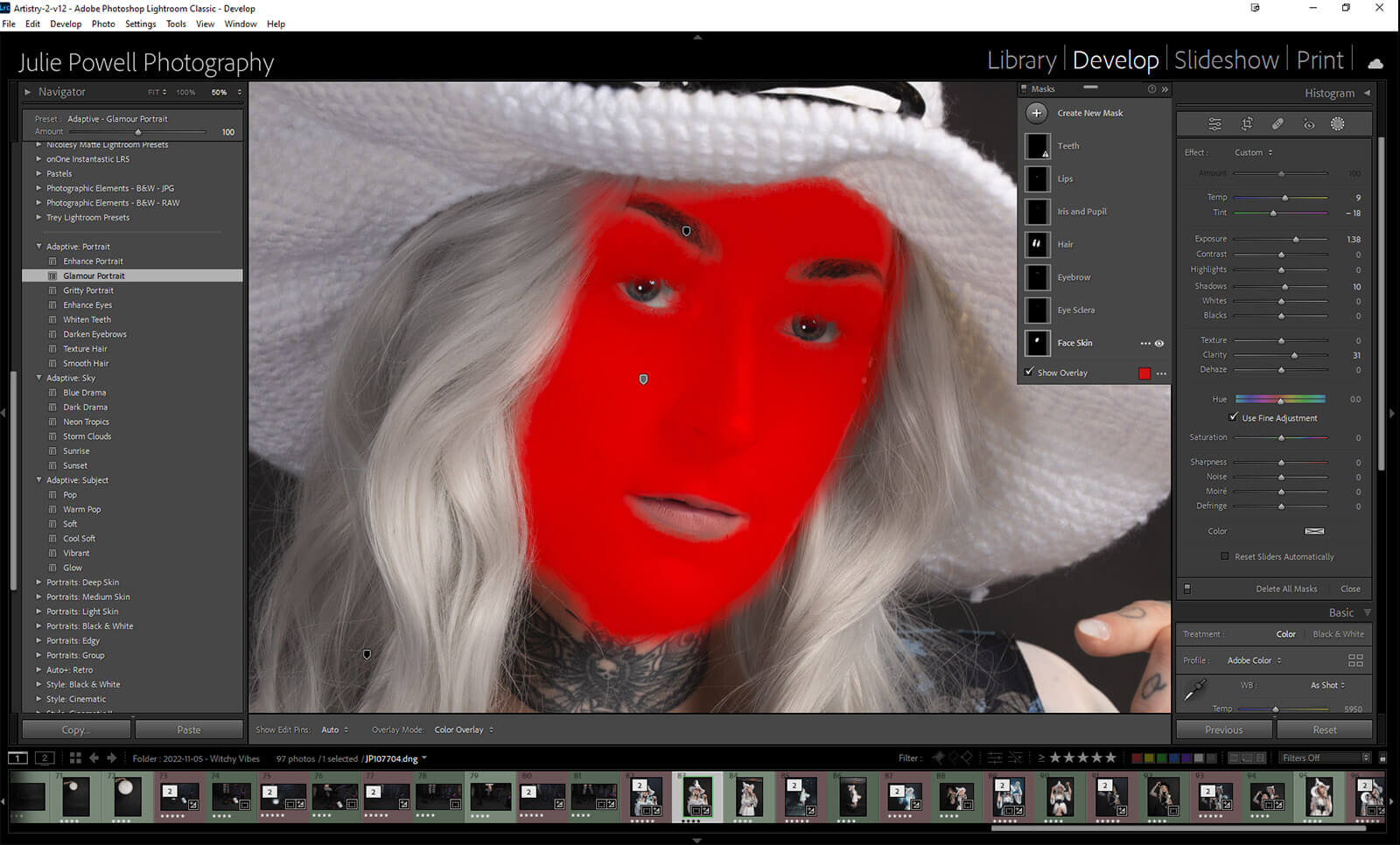 Simply access the Mask Tools panel to make adjustments to the individual masks. They have even been named for you. If a mask doesn’t apply (like no visible teeth) there will still be a mask but it will have a warning message on it. You can ignore or remove the mask.