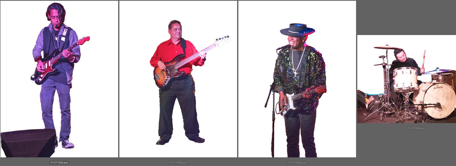 Select your favorite image of each performer. Then, make a selection of your subject and place upon its own layer.