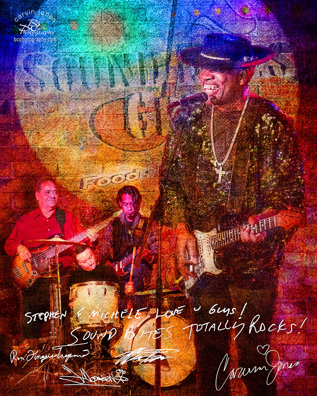 For the past seven years I’ve been creating artwork from live performances at Sound Bites Grill. There are about 125 images hanging on their “Wall of Fame.” I’ll share a few ideas on how I get from live performance photos to the finished piece below.
