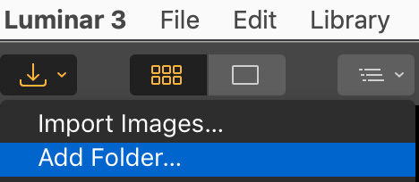 There are two main approaches to adding images to Luminar 3. The first is by importing images and the second is by adding folders.