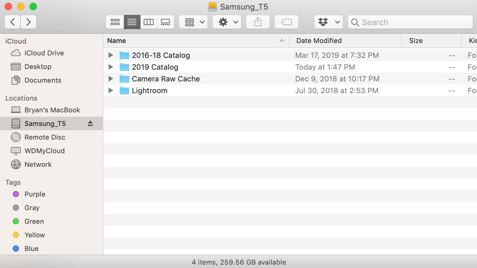 While I was without my iMac, I still wanted to be able to access my full Lightroom catalog, as well as all my photos that were stored on the Drobo. So instead of using a separate catalog for my laptop, I decided to put my Lightroom catalog on an external SSD. This would allow me to access that catalog from any computer.