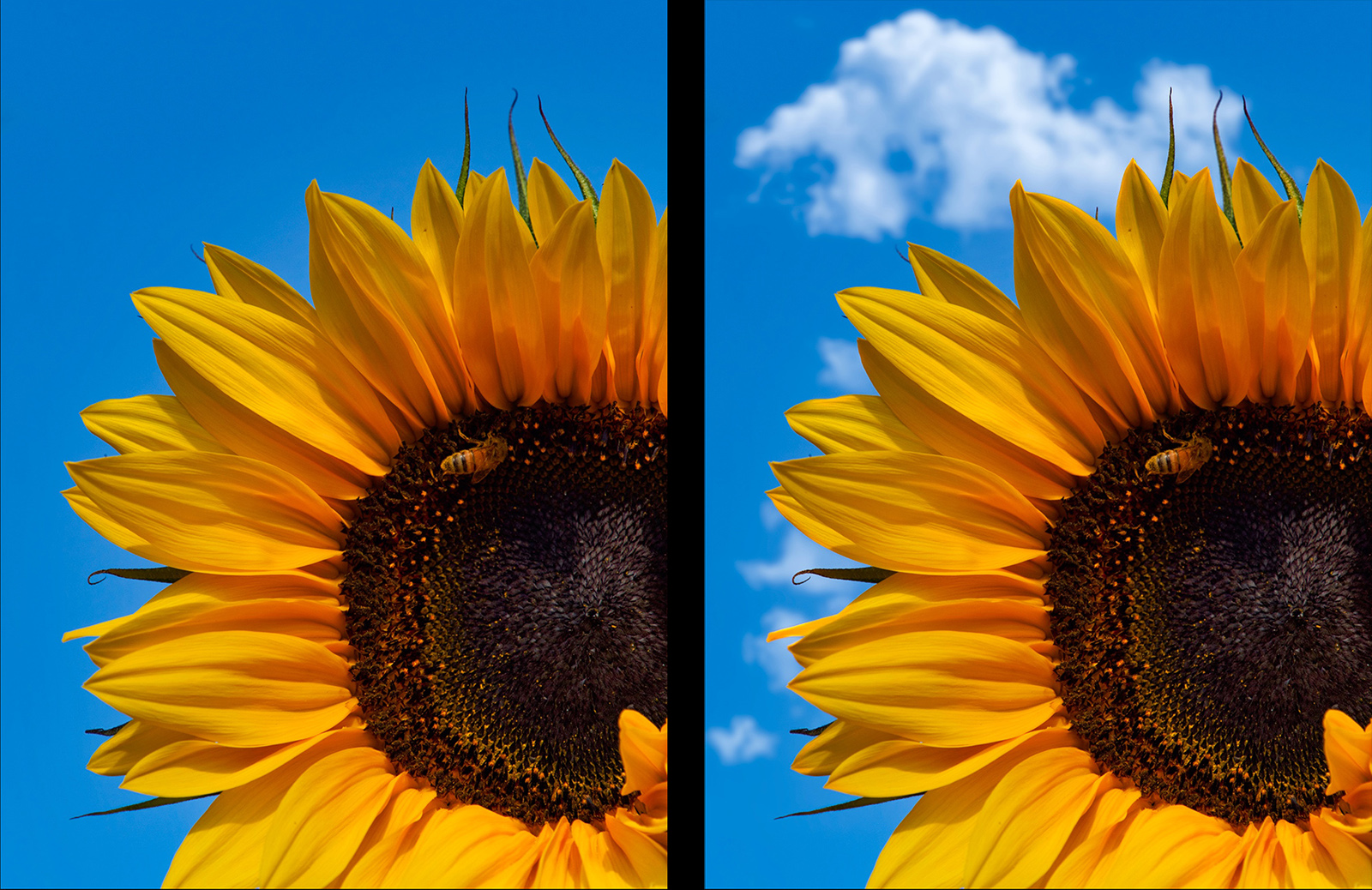 Let’s take a look at one last photo. Sometimes you really like your sky but just need to add a few clouds to it, like with this photo of a sunflower against a bright blue sky. If only it had some clouds — what a difference they could make!