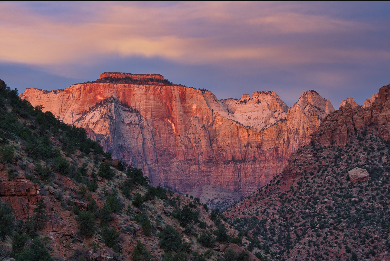 Let’s take a look at a landscape photo photographed at sunrise in Zion National Park, UT.