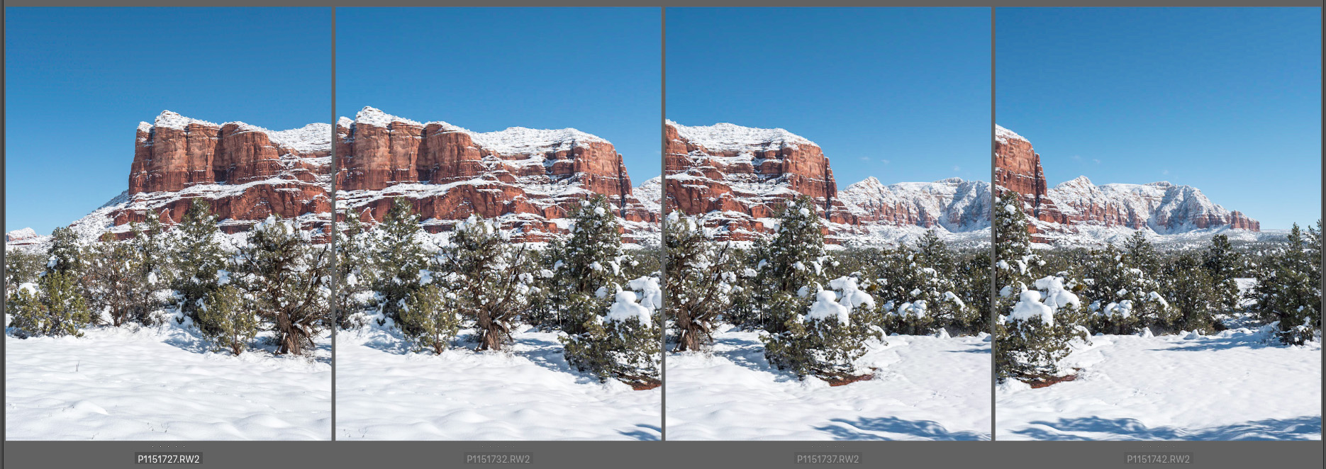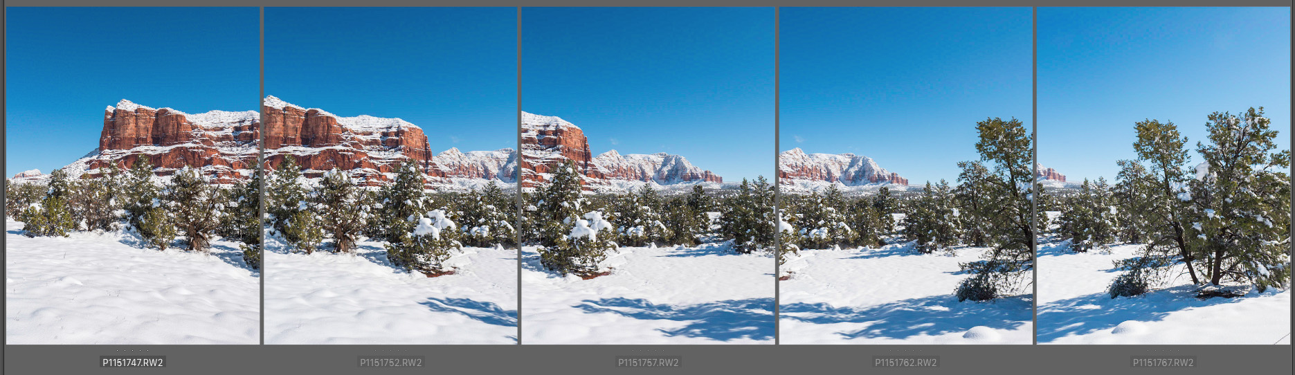One other aside — depending upon the lighting density of the scene I’ll also bracket exposure for possible HDR work before assembling the final photo. My Lumix cameras have a built in level that is visible on the screen which is extremely helpful in keeping the horizon from shifting while making the captures.