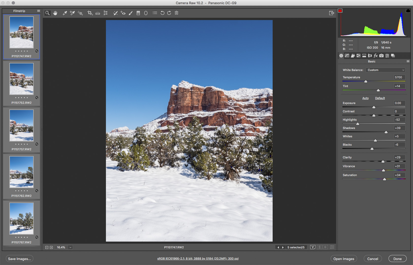 Let’s take a quick look at my Photoshop workflow. First images are selected in Adobe Bridge. Highlight the respective images and open in Adobe Camera RAW. After the same adjustments have been applied to all the images click Done. The files will now have those settings applied when the images are handed off to Photoshop in the next step.