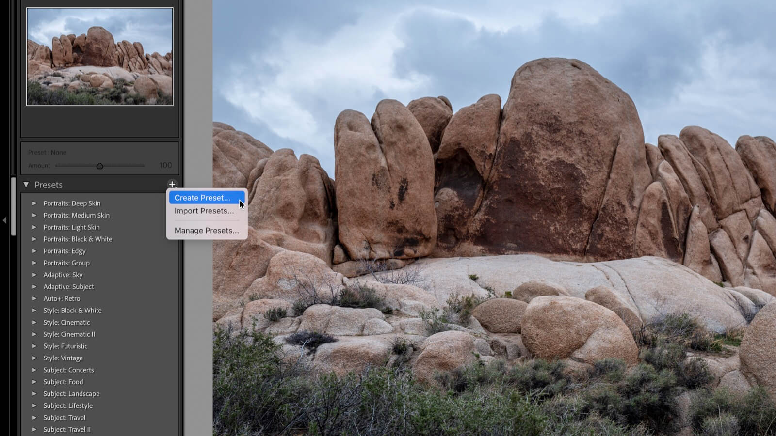 Presets — one-click editing recipes — are a great way to speed up your post processing workflow. They can help minimize repetitive actions, and once you dial in a specific “look” you can easily style a series of photos.