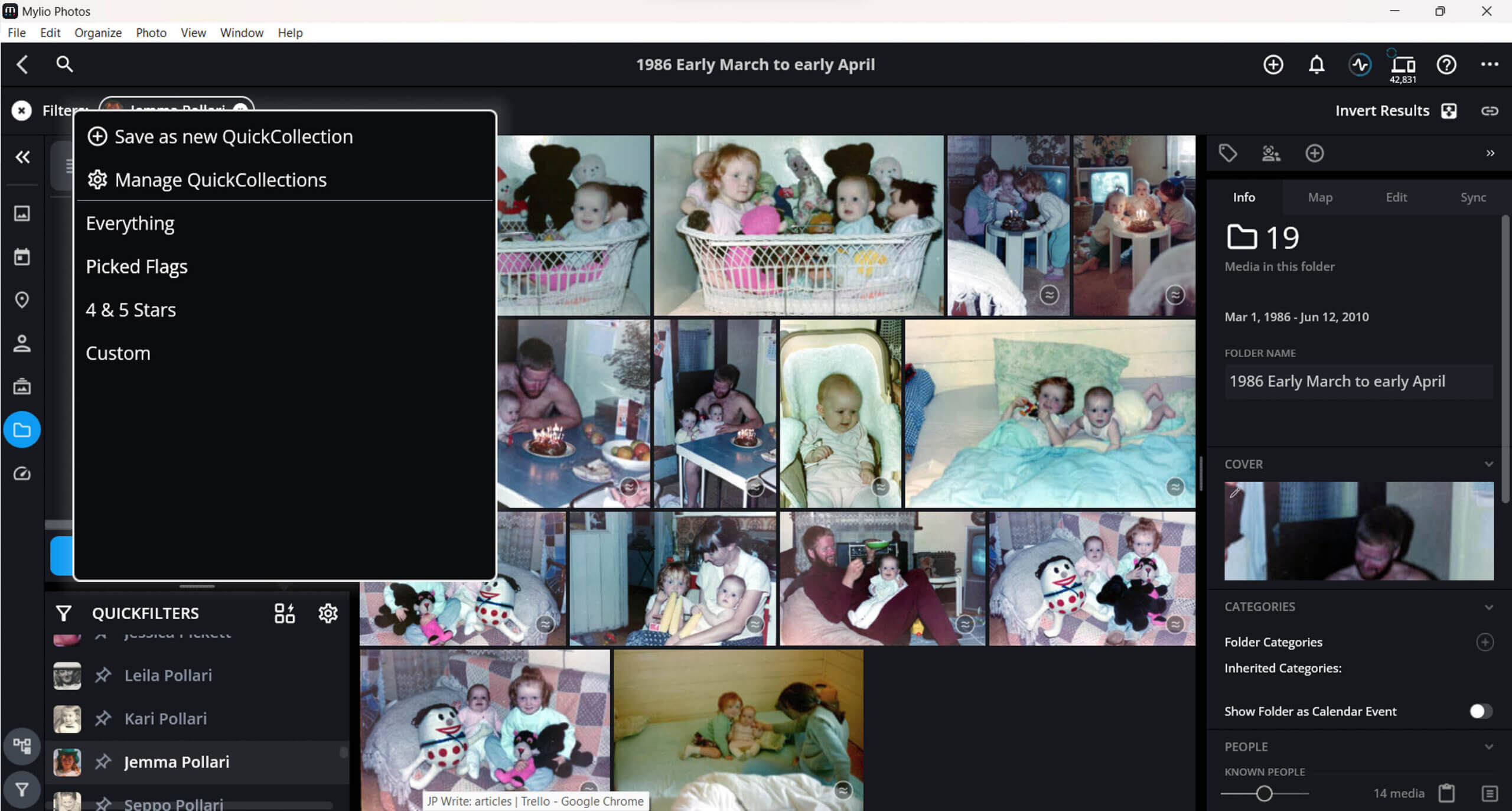 Collating and organizing scanned family photos using QuickFilters and QuickCollections
