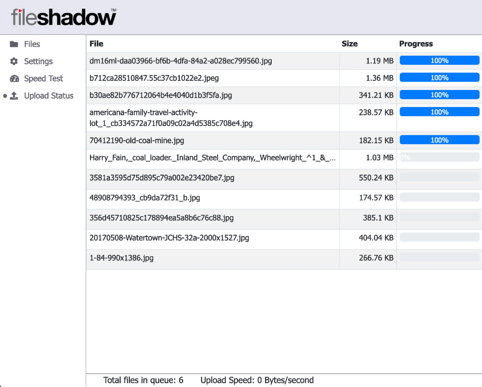 Also new is an Upload Status area, where you can monitor the progress of your files as they are being uploaded to FileShadow. Several stability and performance improvements were included as well.