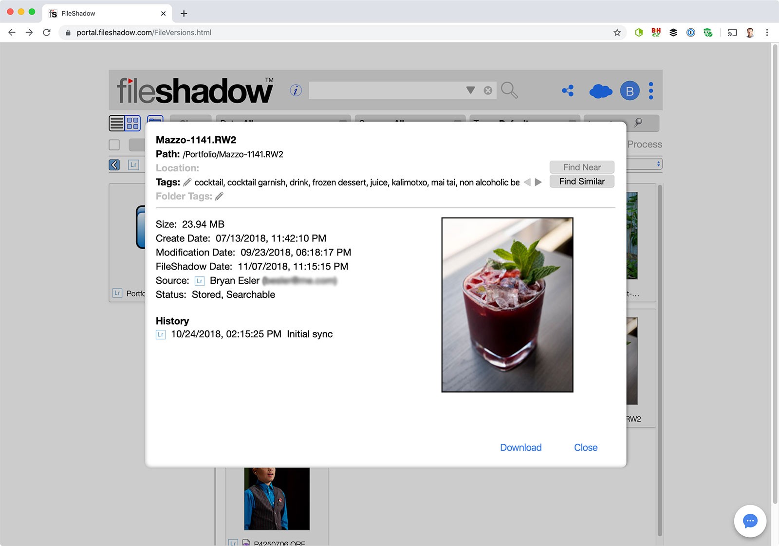 Where FileShadow shines is in its automatic and custom tagging system, allowing you to search through a wide array of filters no matter what service they live on. It brings in your existing metadata, but also adds tags based on machine learning technology. So if you’re a photographer who never keywords your photos (guilty as charged), you’ll still be able to search with FileShadow and find your images easily. It recognizes RAW, JPEG, TIFF and most other image file formats.
