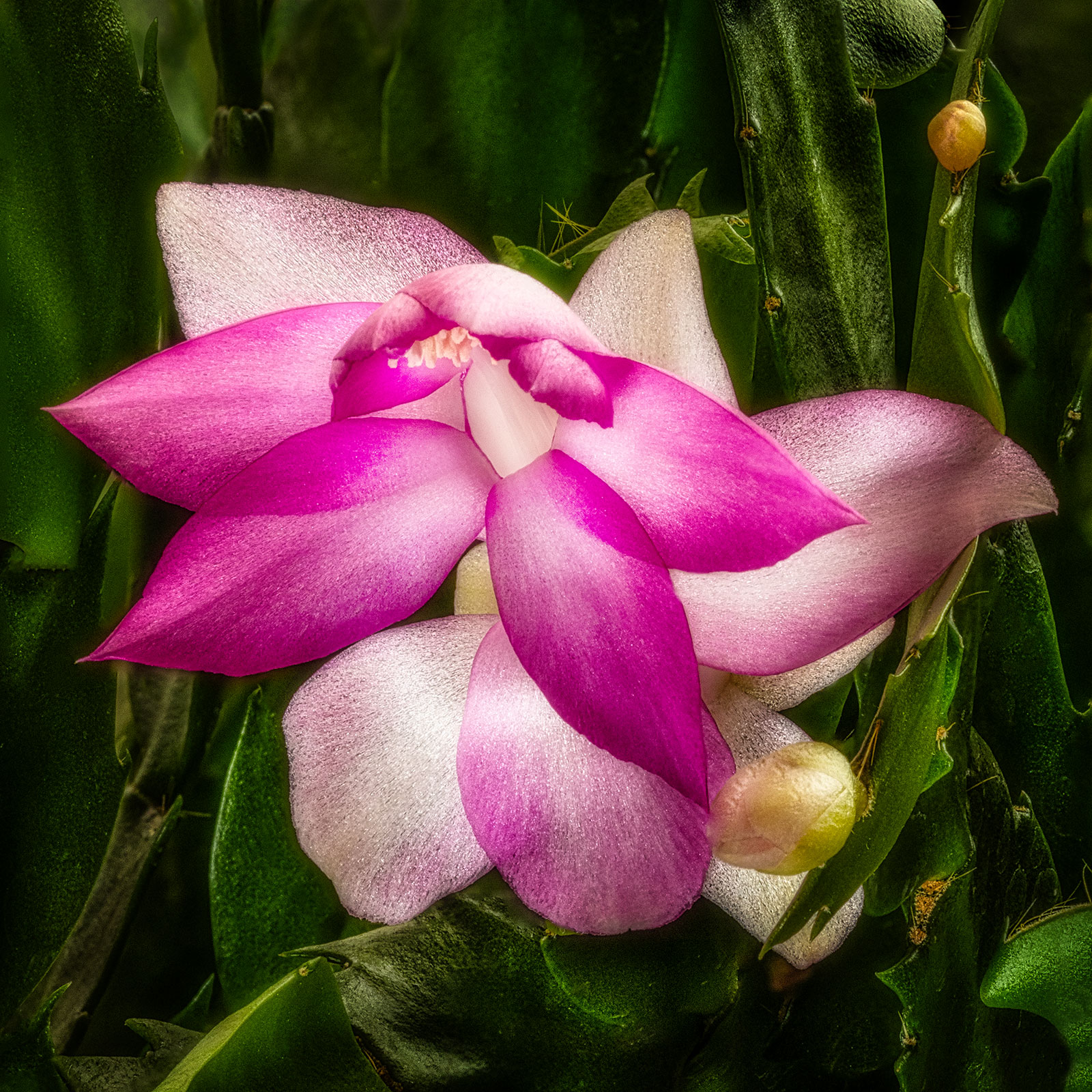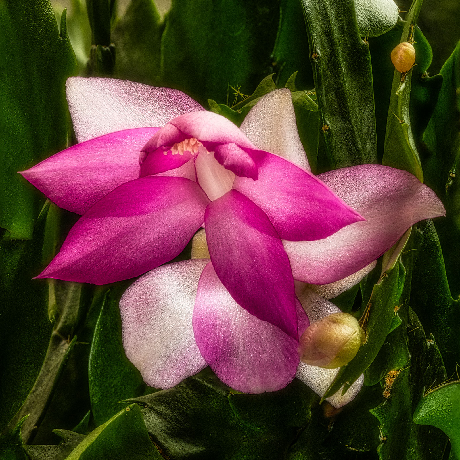 I find that applying focus stacking on a base image ultimately leads to a more interesting image. But that’s just the beginning. Here is the continuation of the making of the Christmas cactus bloom. If you haven’t already, be sure to read part one.